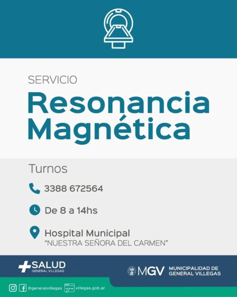 El área de Salud de la Municipalidad de General Villegas comunica que ya se encuentra en funcionamiento el Resonador Magnético.