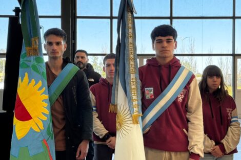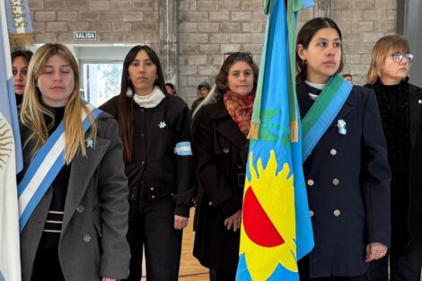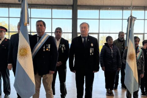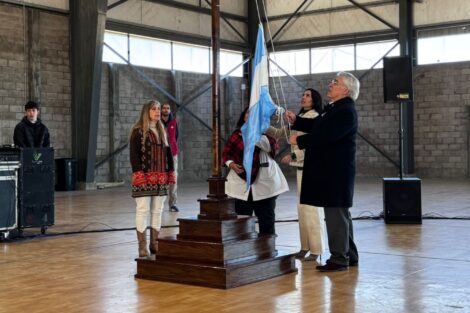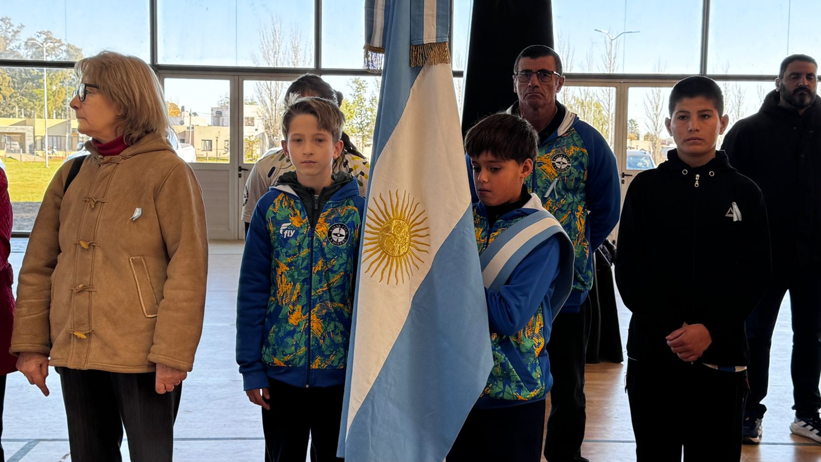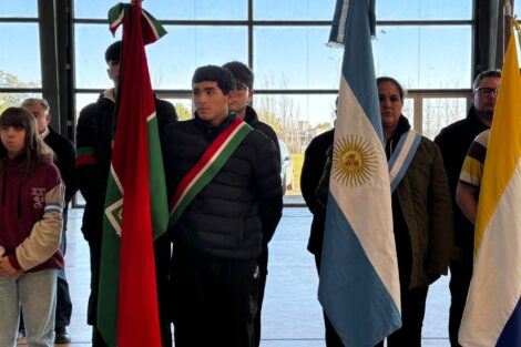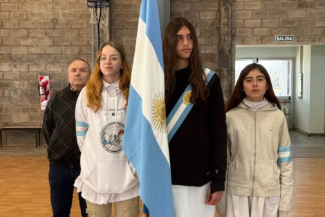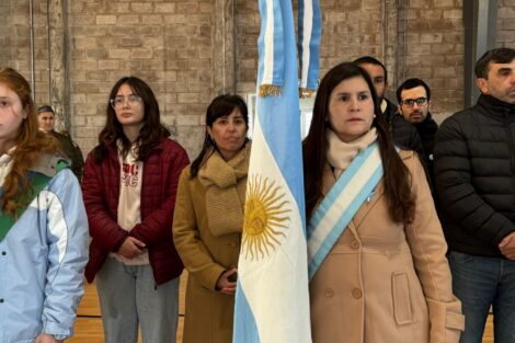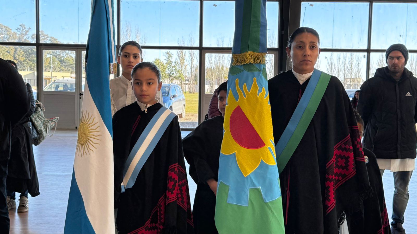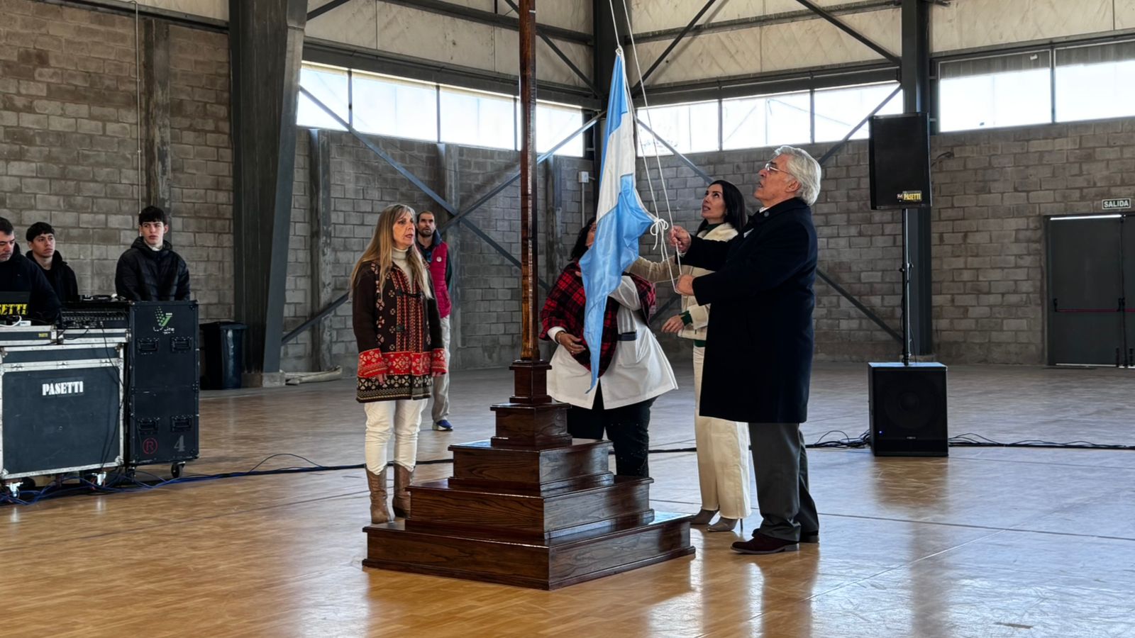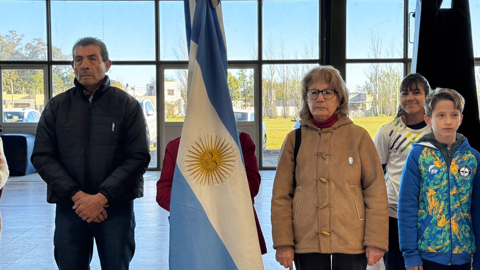 El acto de izar el pabellón nacional estuvo a cargo del intendente Alegre, la secretaria de Educación y Cultura, Valeria Iglesias; la inspectora distrital, Susana Garat y la directora de la Escuela Primaria de Adultos N° 701, Patricia Jaime.