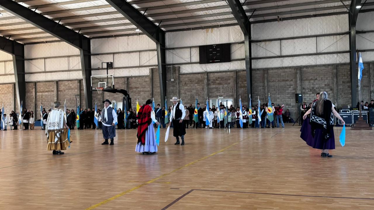El evento tuvo lugar a las 10 horas en el SUM del Parque Municipal y acto contó con la presencia de funcionarios del Ejecutivo municipal, autoridades educativas, políticas y policiales, así como abanderados y escoltas de instituciones educativas y vecinos de la comunidad.
