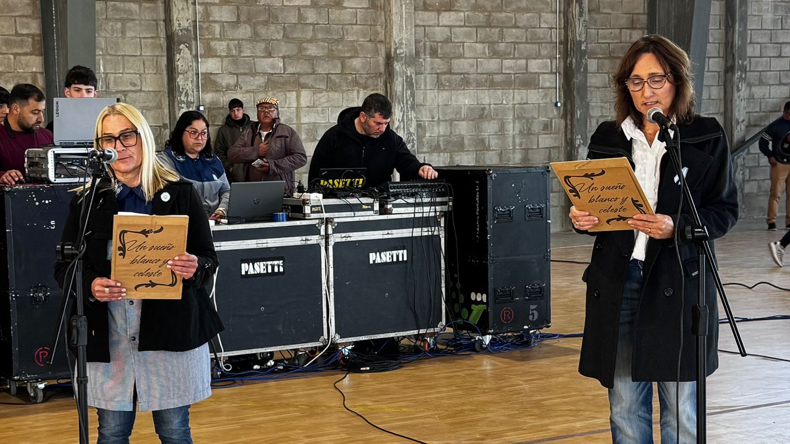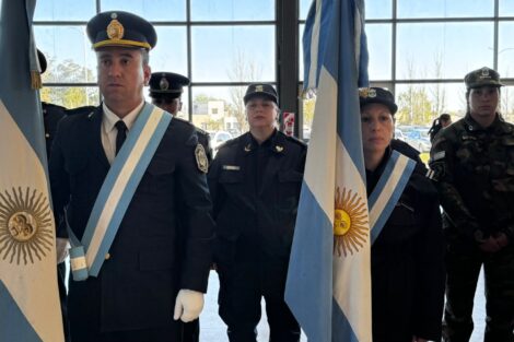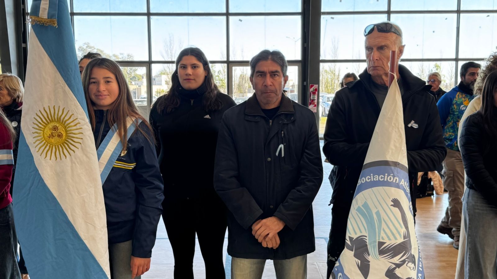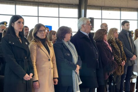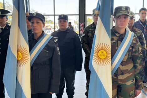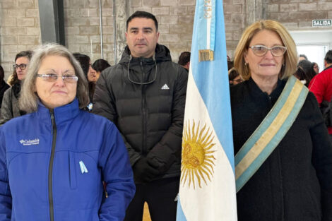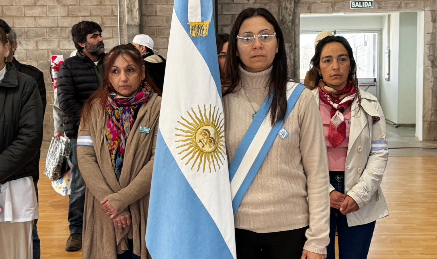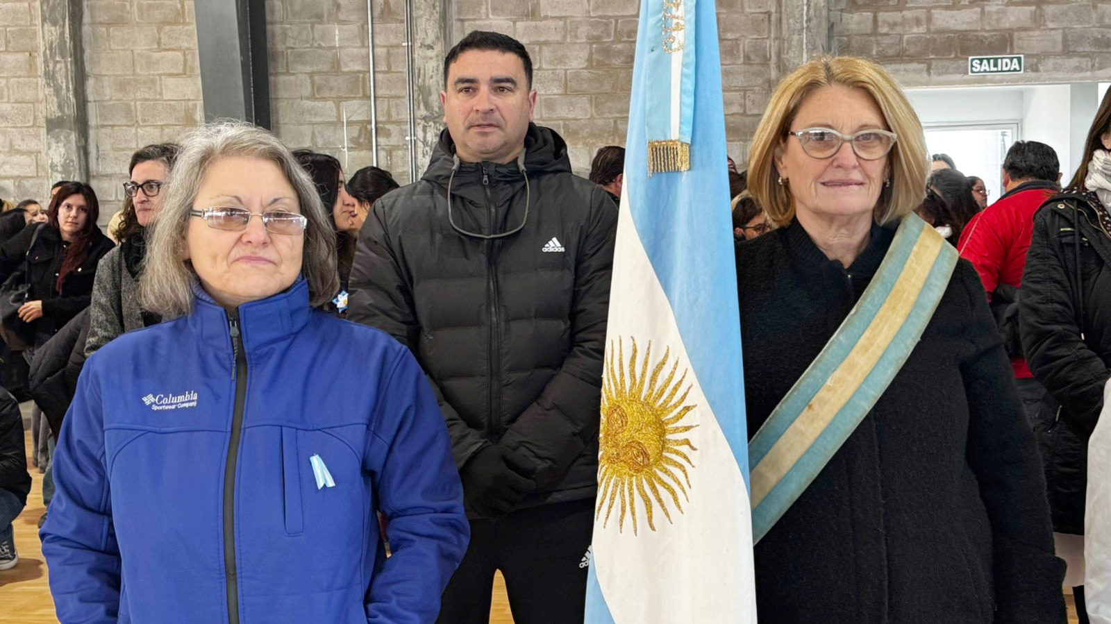 En primer lugar, el pabellón nacional fue izado por el intendente municipal, la secretaria de Educación y Cultura, Valeria Iglesias; la secretaria de Obras Públicas, Alejandra Matellán y la inspectora distrital, Susana Garat.