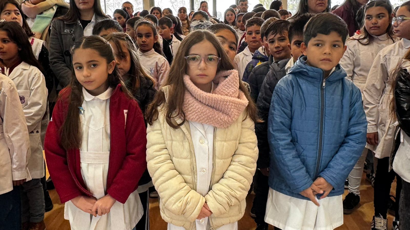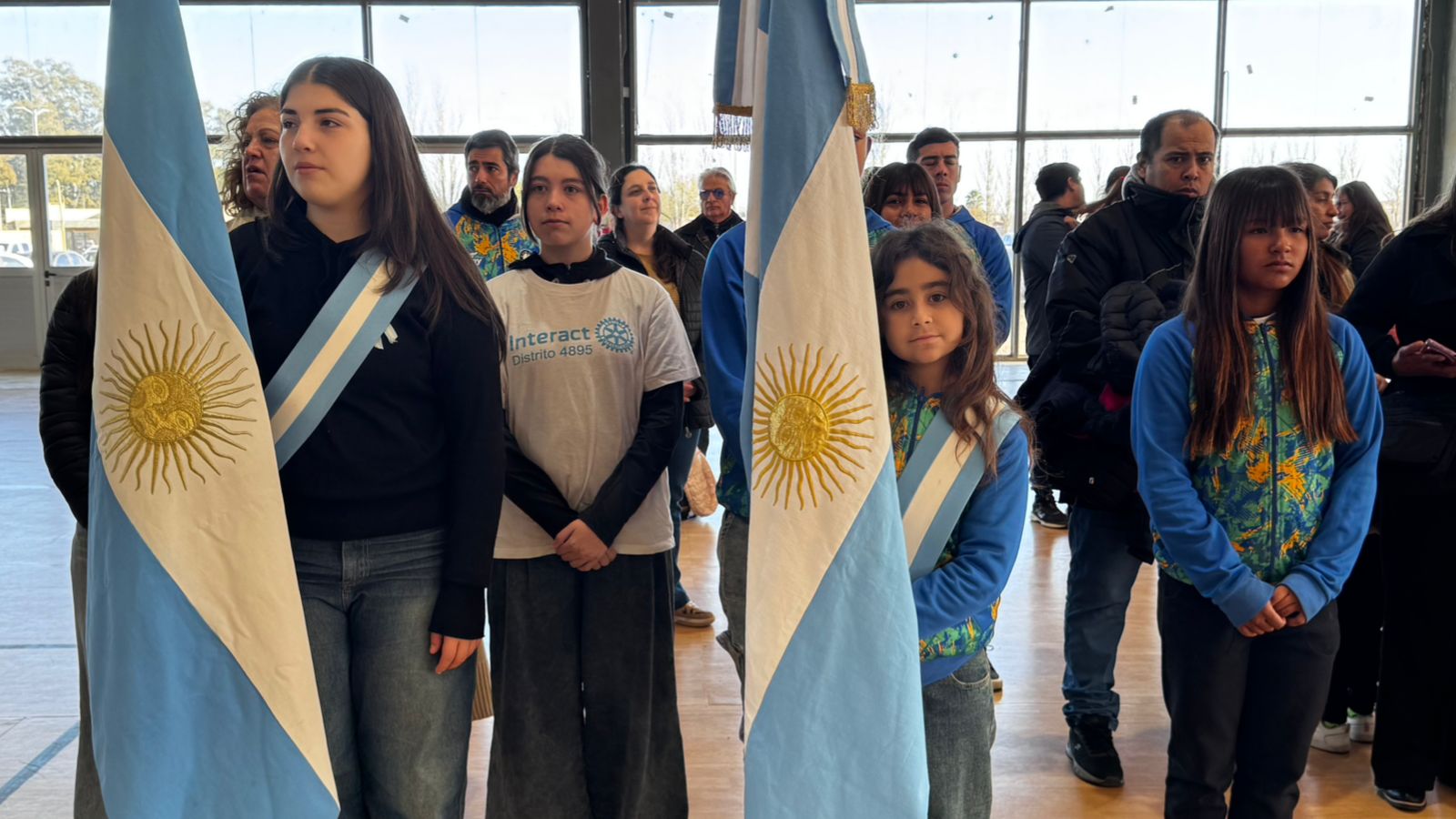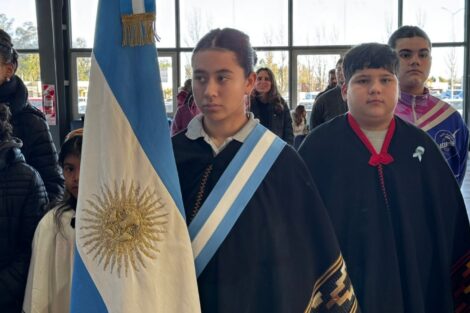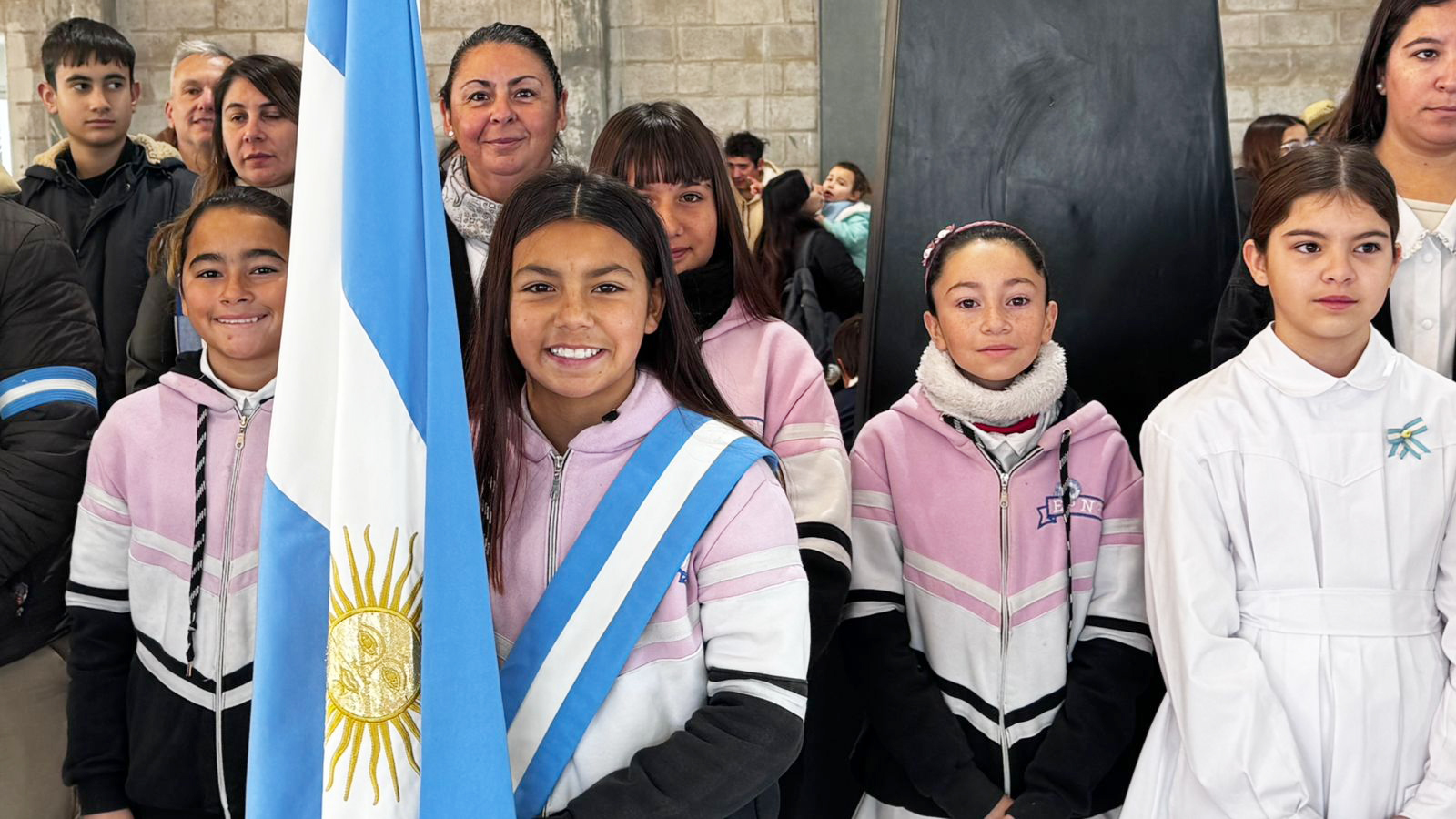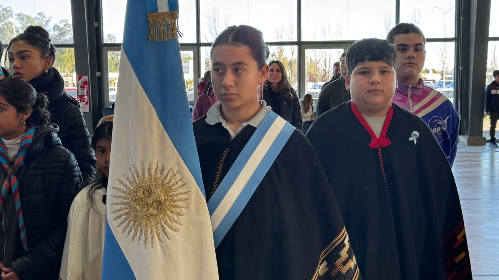 Tras entonar el Himno Nacional, los alumnos de 4° año de las escuelas primarias N°1, N°2, N°3, N°17, N°45, N°46, Escuela Especial N°501, Escuela Primaria de Adultos N°701 y Colegio María Inmaculada, la Inspectora Jefe Distrital, Susana Garat, tomó la Promesa de Lealtad a la Bandera.