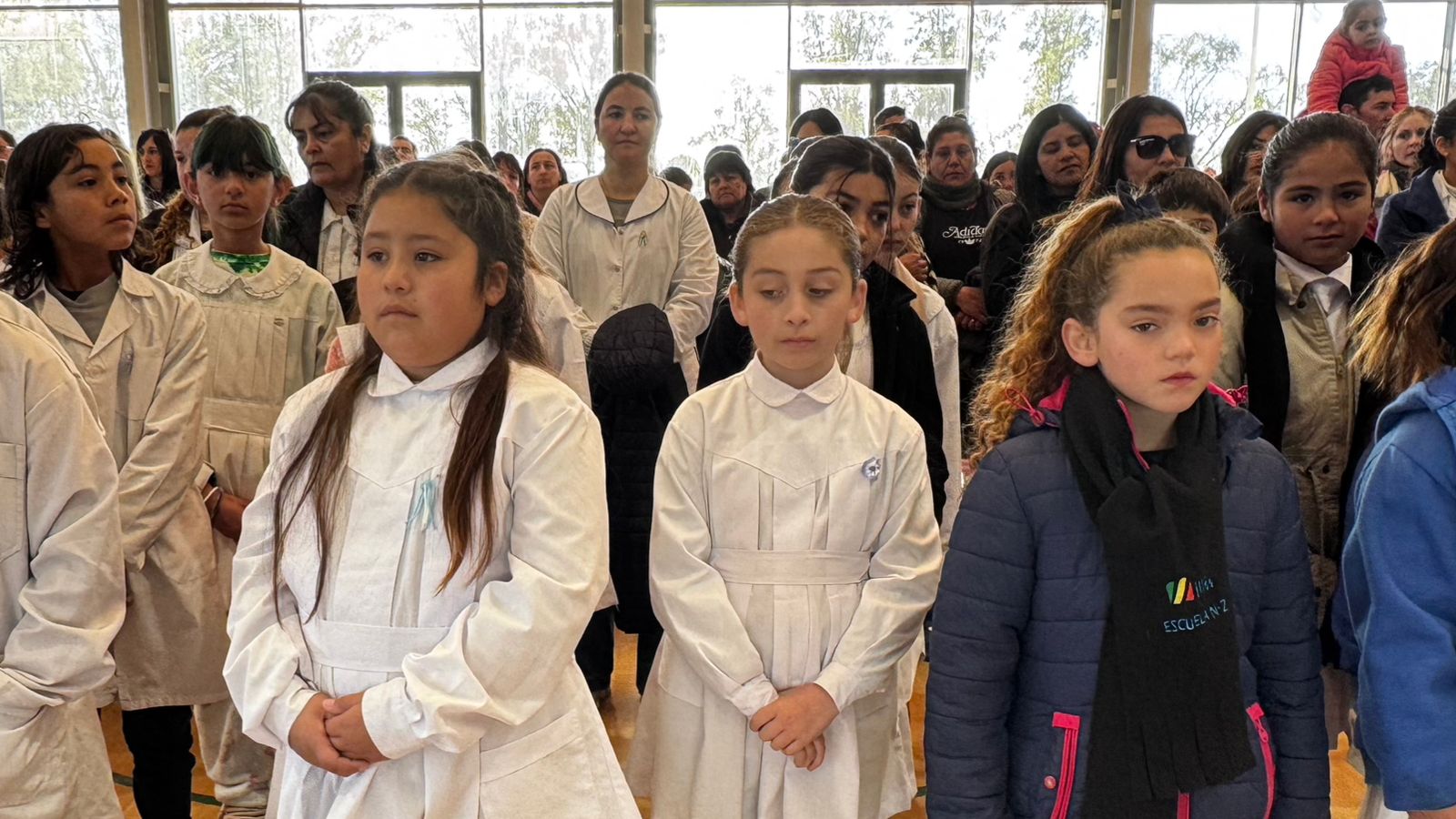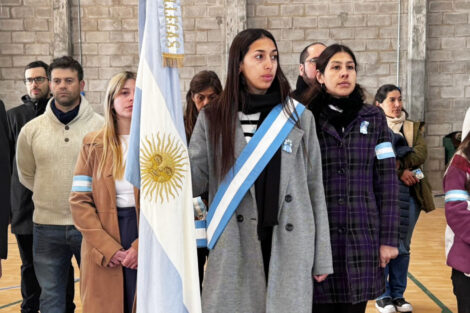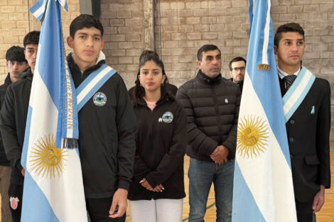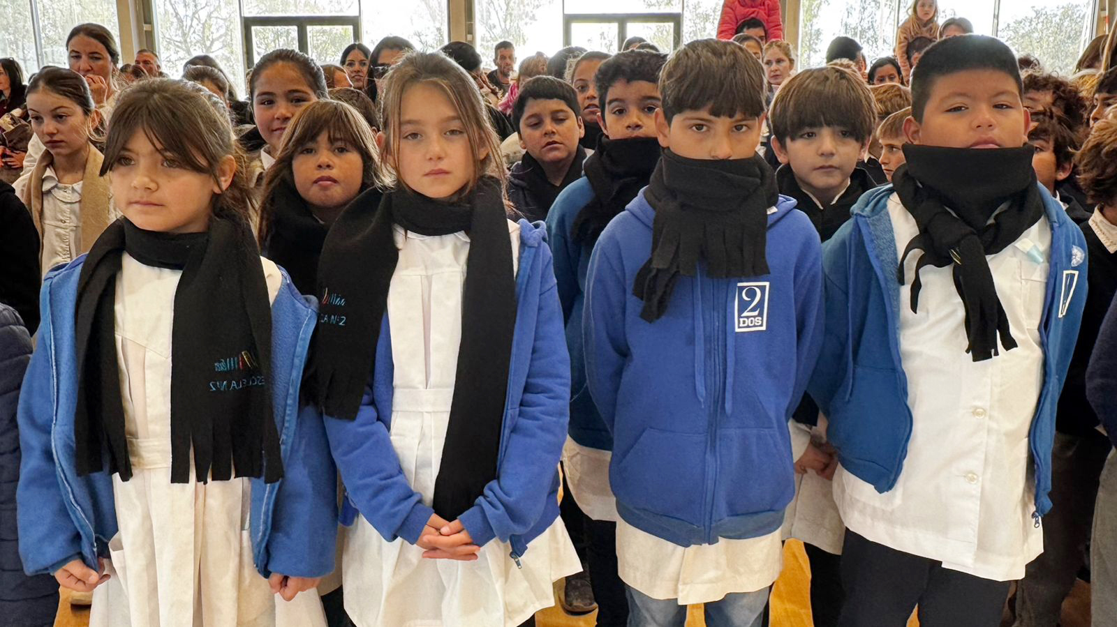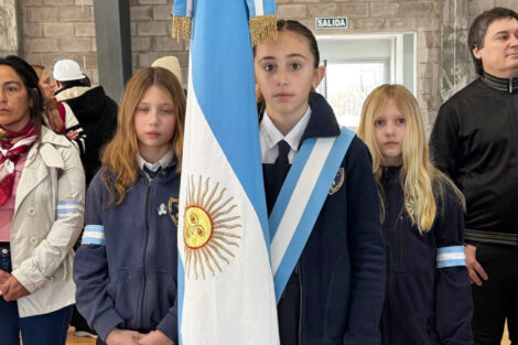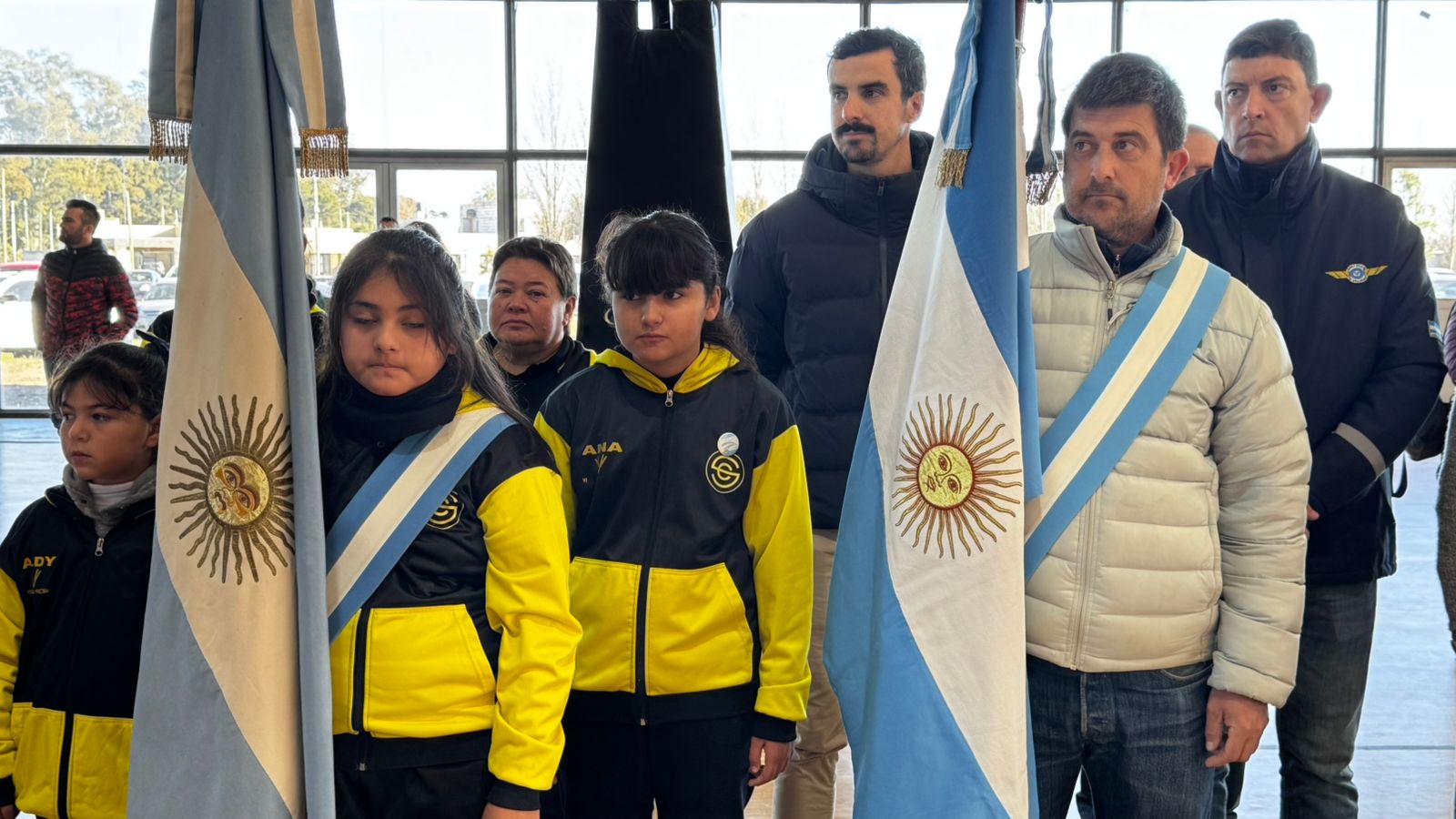 Tras entonar el Himno Nacional, los alumnos de 4° año de las escuelas primarias N°1, N°2, N°3, N°17, N°45, N°46, Escuela Especial N°501, Escuela Primaria de Adultos N°701 y Colegio María Inmaculada, la Inspectora Jefe Distrital, Susana Garat, tomó la Promesa de Lealtad a la Bandera.