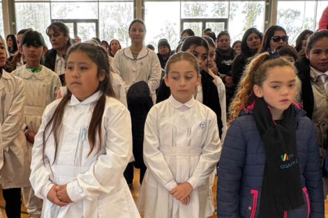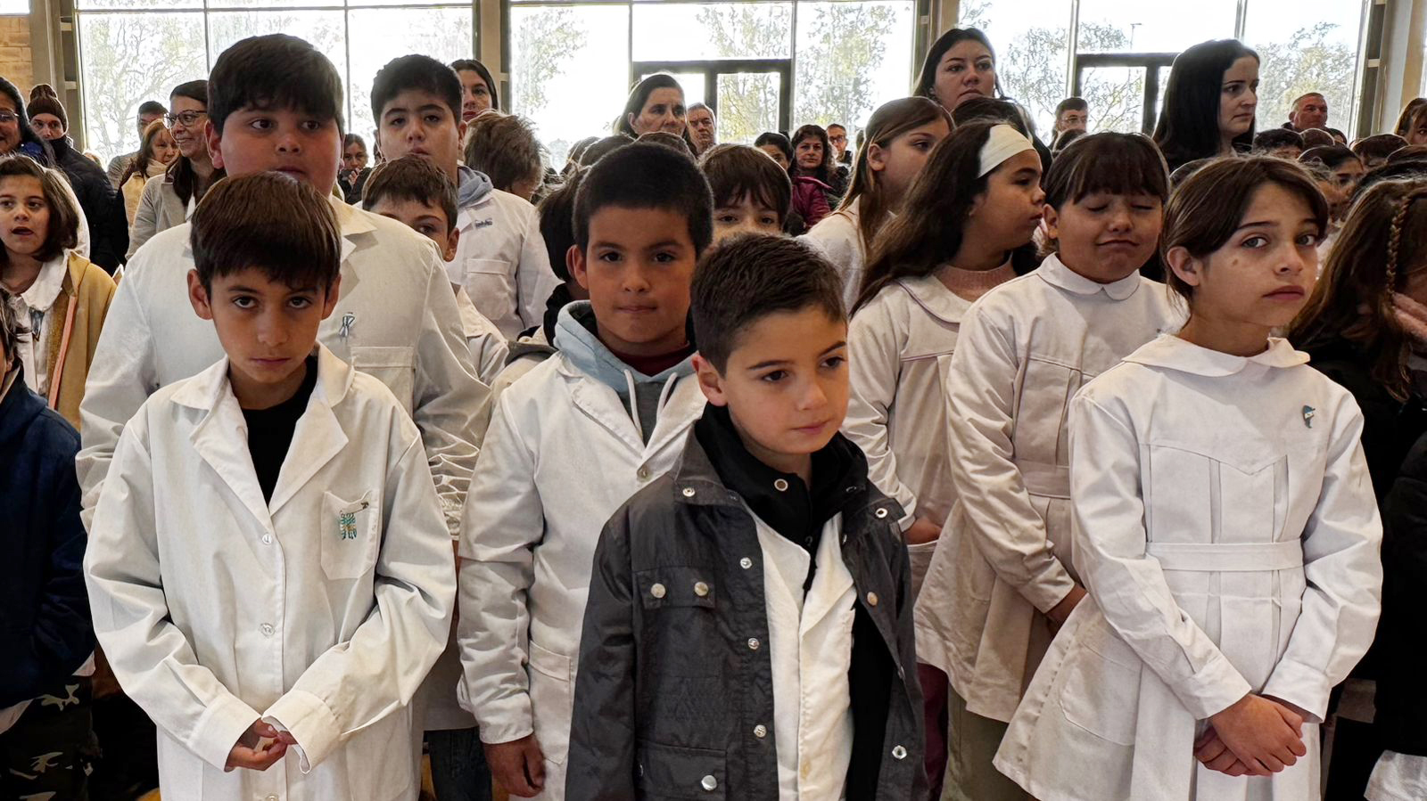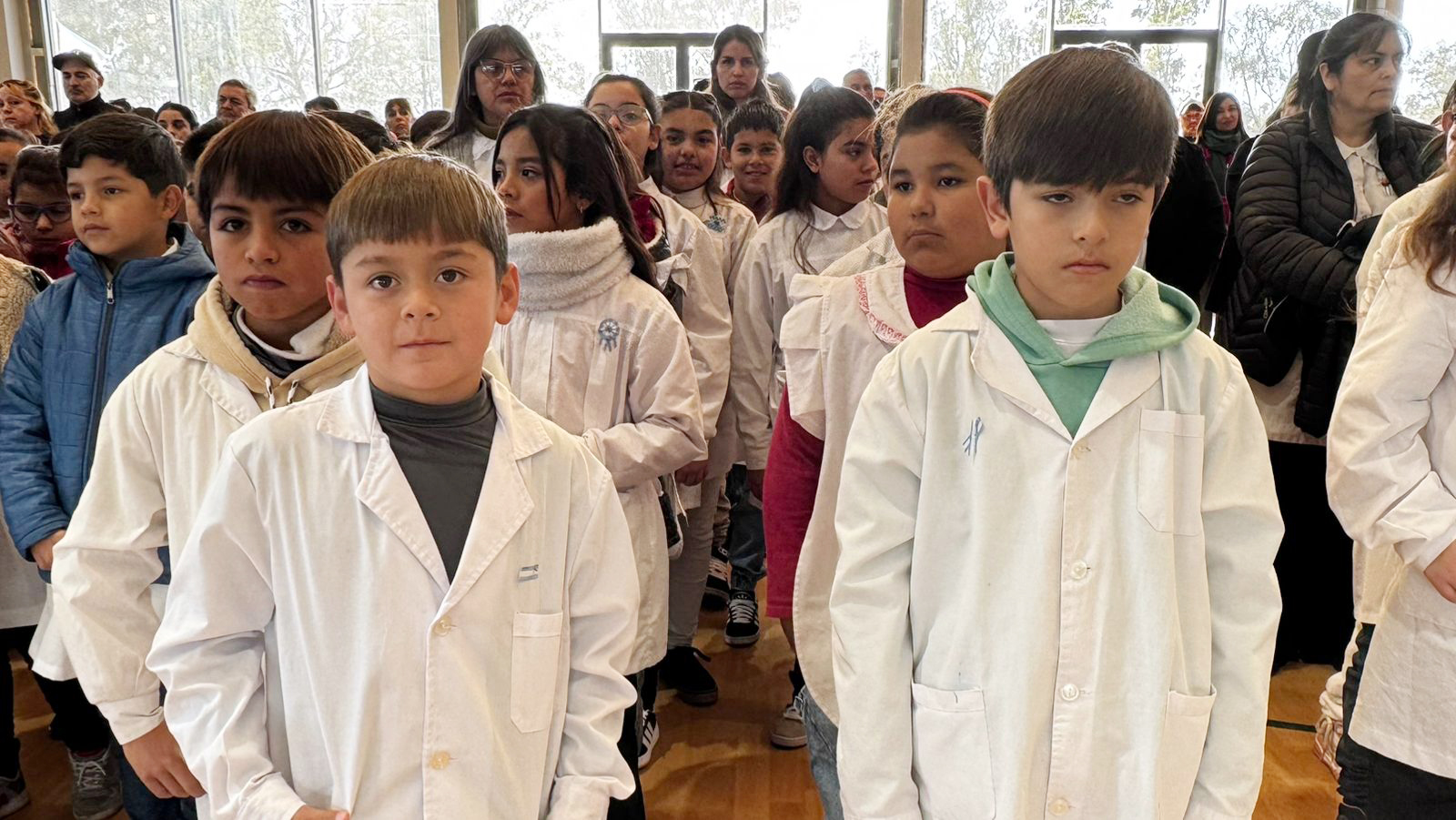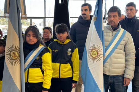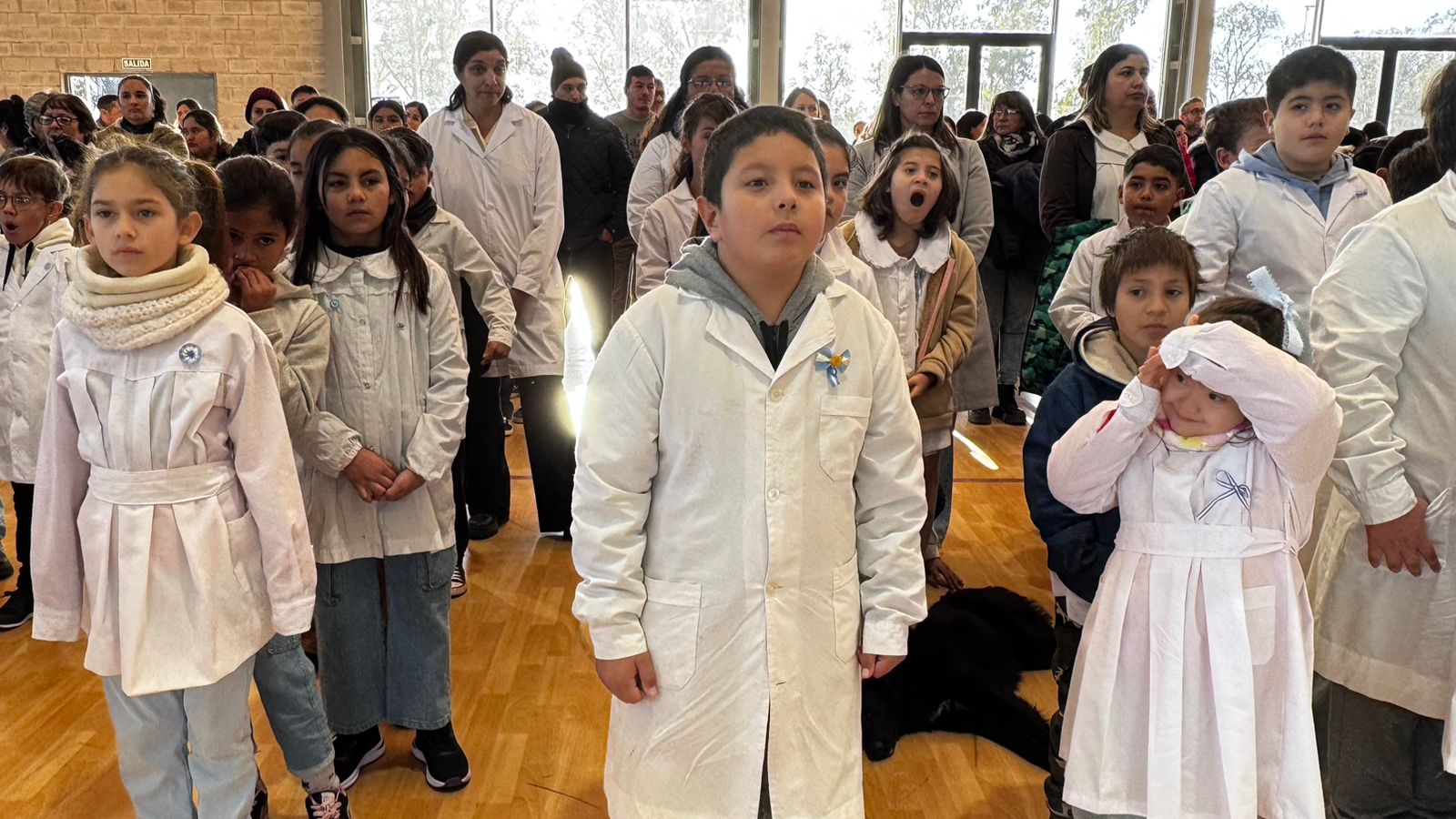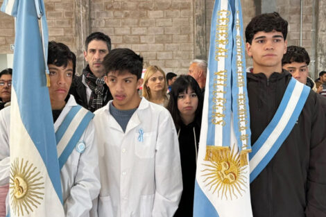 Tras entonar el Himno Nacional, los alumnos de 4° año de las escuelas primarias N°1, N°2, N°3, N°17, N°45, N°46, Escuela Especial N°501, Escuela Primaria de Adultos N°701 y Colegio María Inmaculada, la Inspectora Jefe Distrital, Susana Garat, tomó la Promesa de Lealtad a la Bandera.