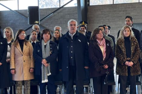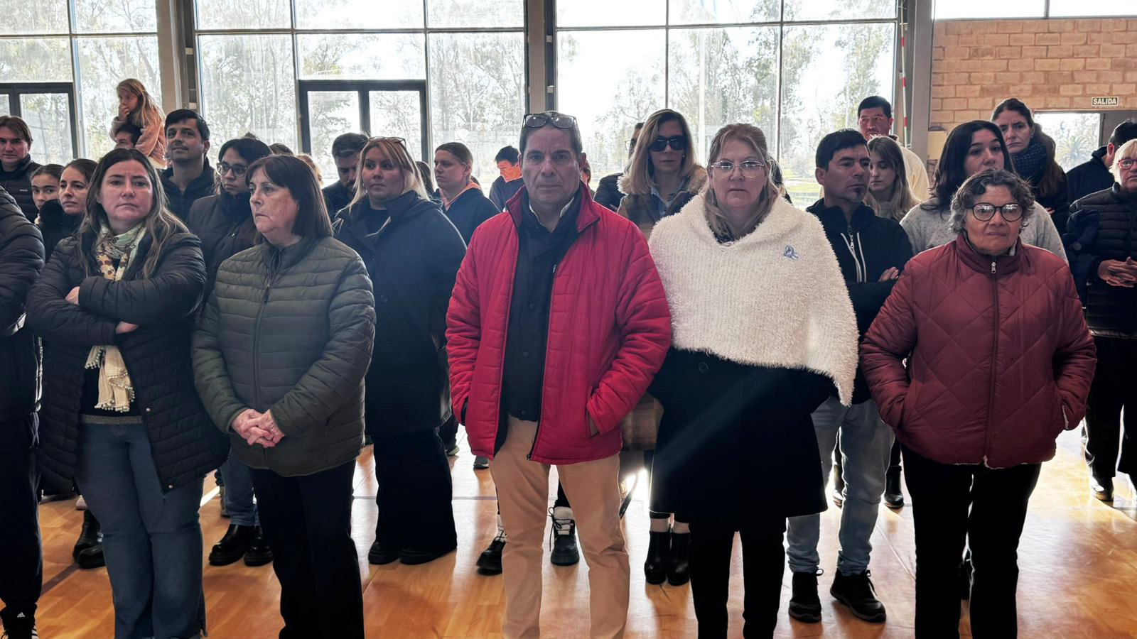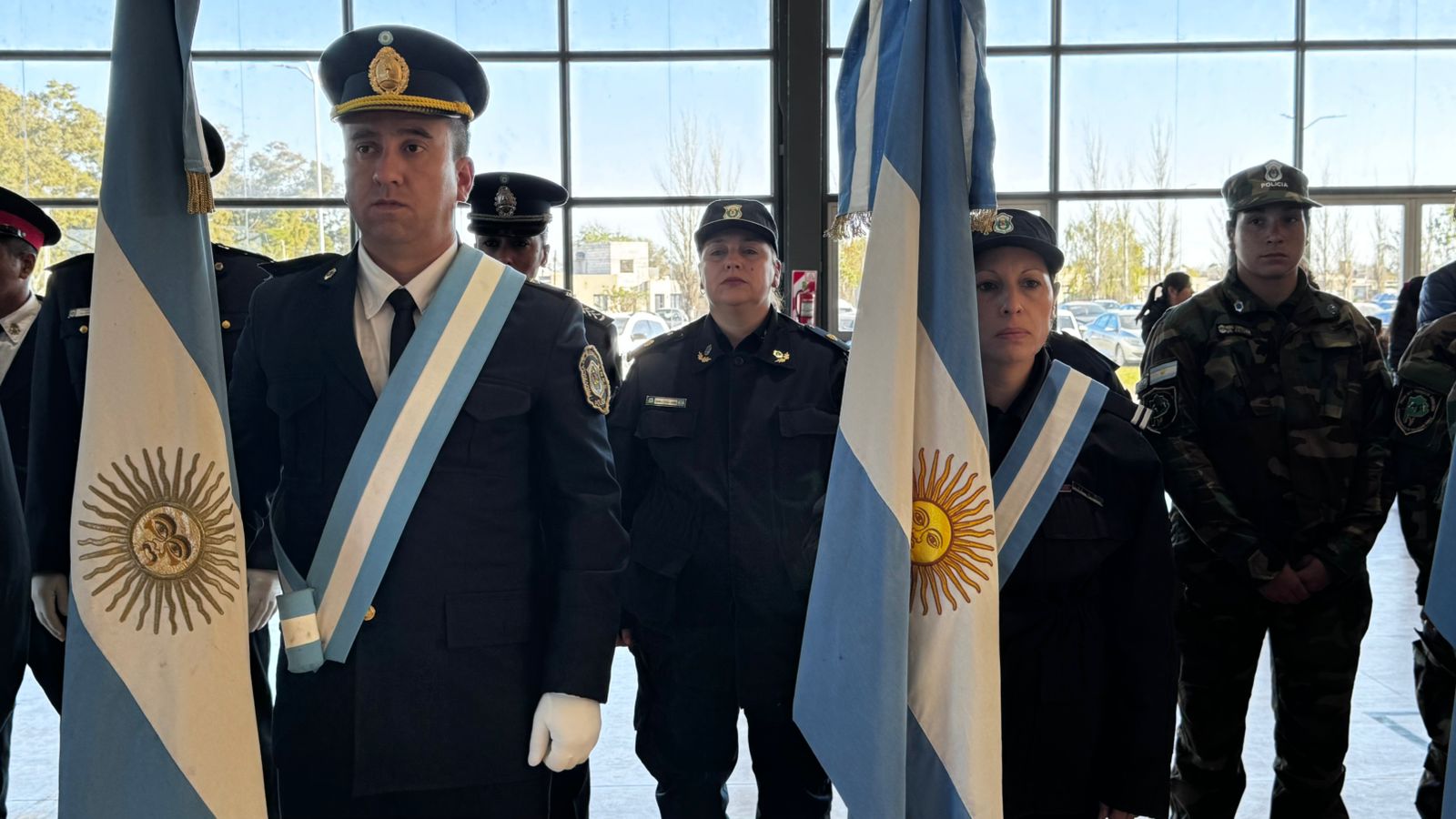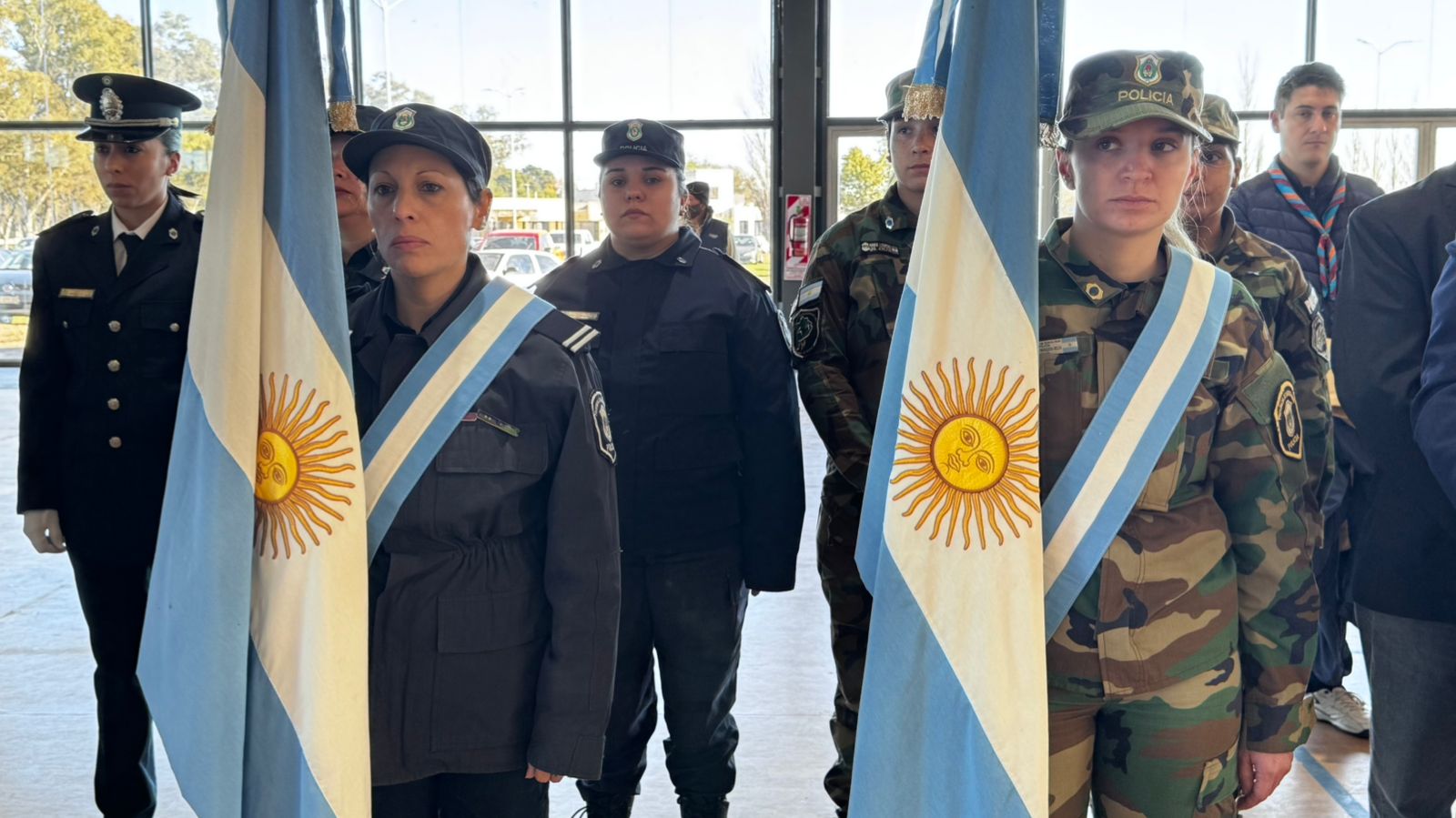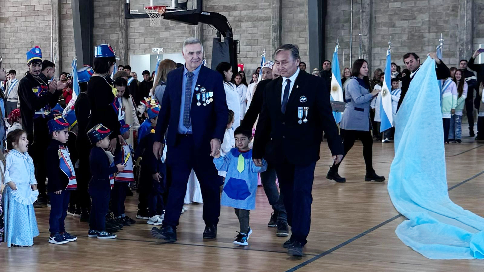 El evento protocolar contó con la presencia de funcionarios del Ejecutivo municipal, la presidente del Concejo Deliberante, concejales, consejeros escolares y autoridades del ámbito de la educación, así como abanderados y escoltas de instituciones educativas e instituciones intermedias, además de vecinos de la comunidad.