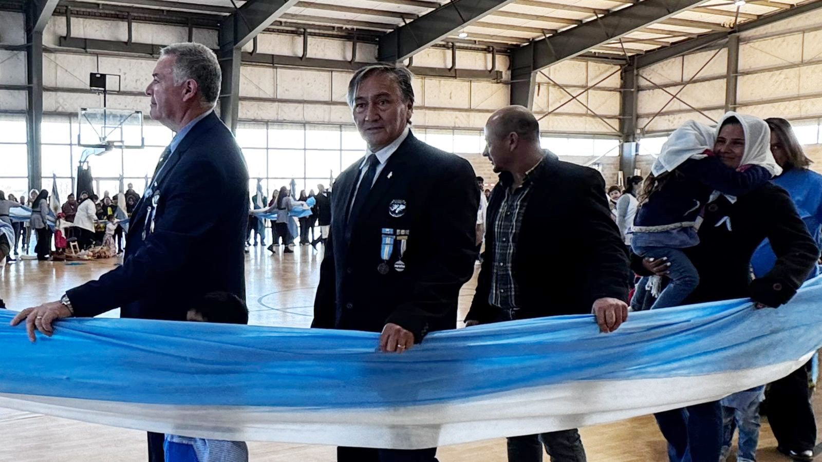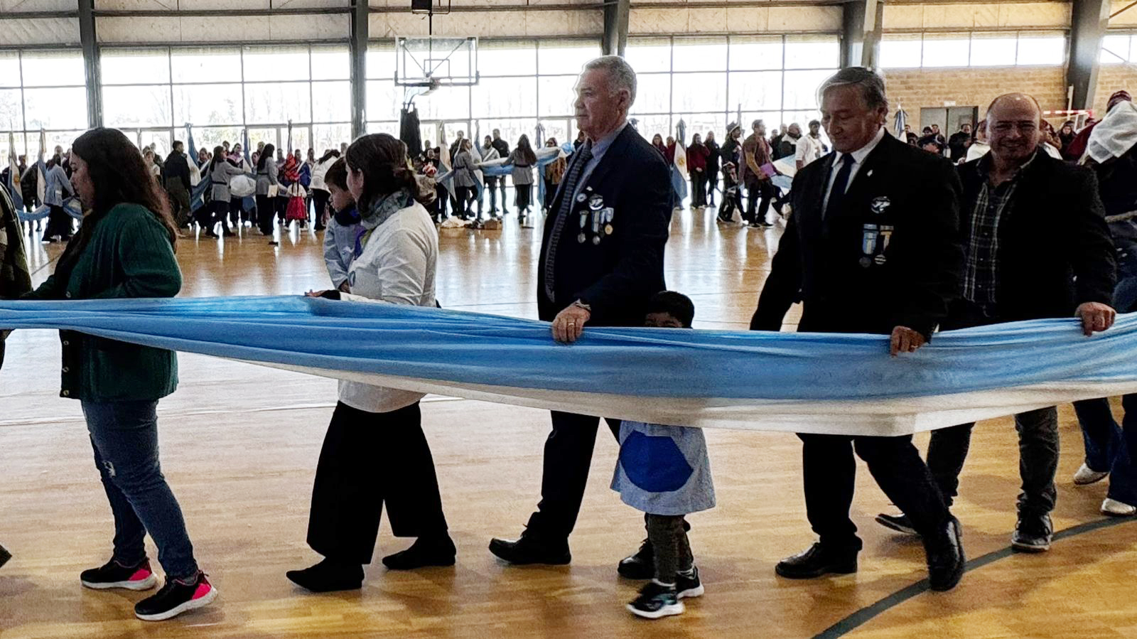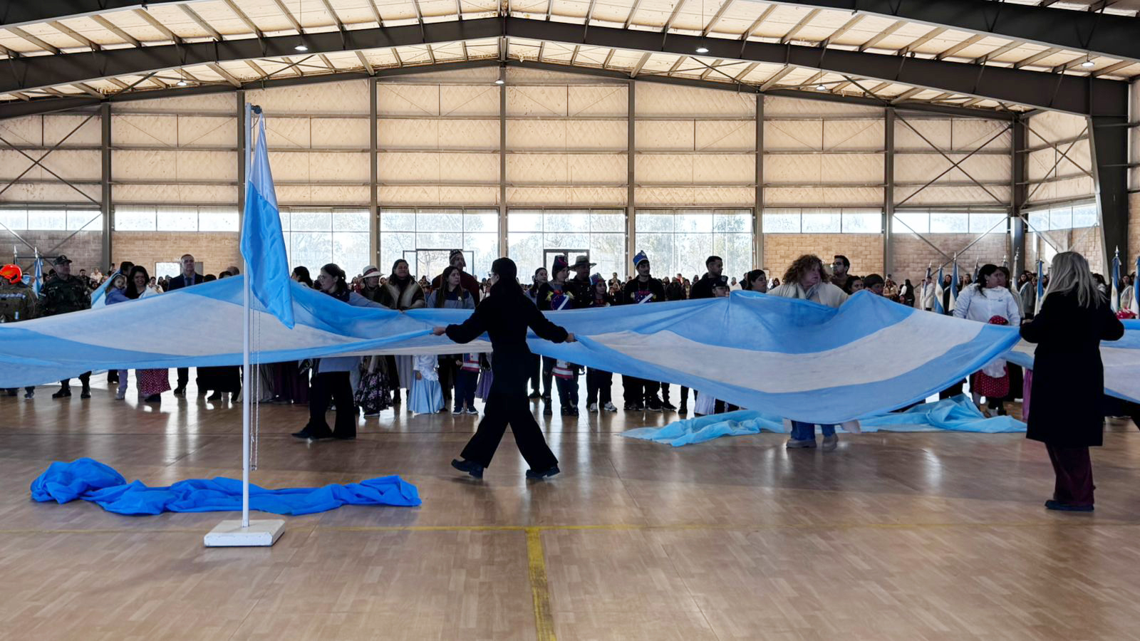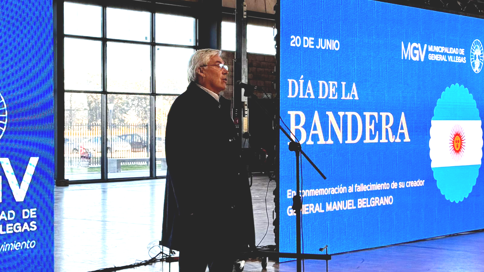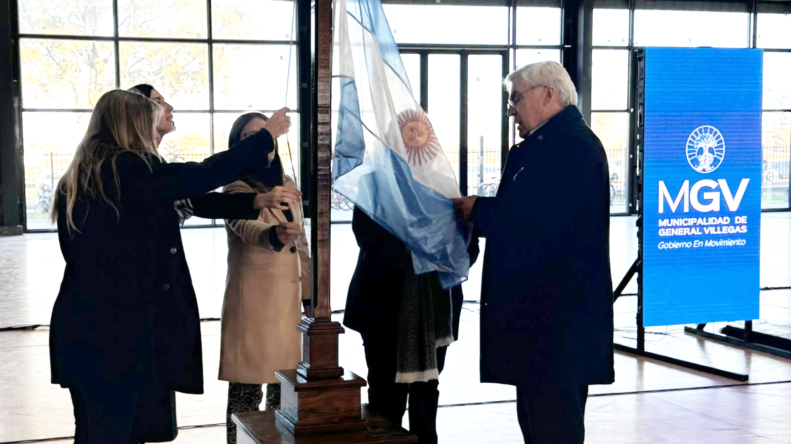 El pasado viernes 20 de junio, el intendente Gilberto Alegre encabezó el acto conmemorativo del Día de la Bandera Nacional, en homenaje a su creador, el General Manuel Belgrano. El evento tuvo lugar en el salón de usos múltiples del Parque Municipal, a partir de las 10 horas.