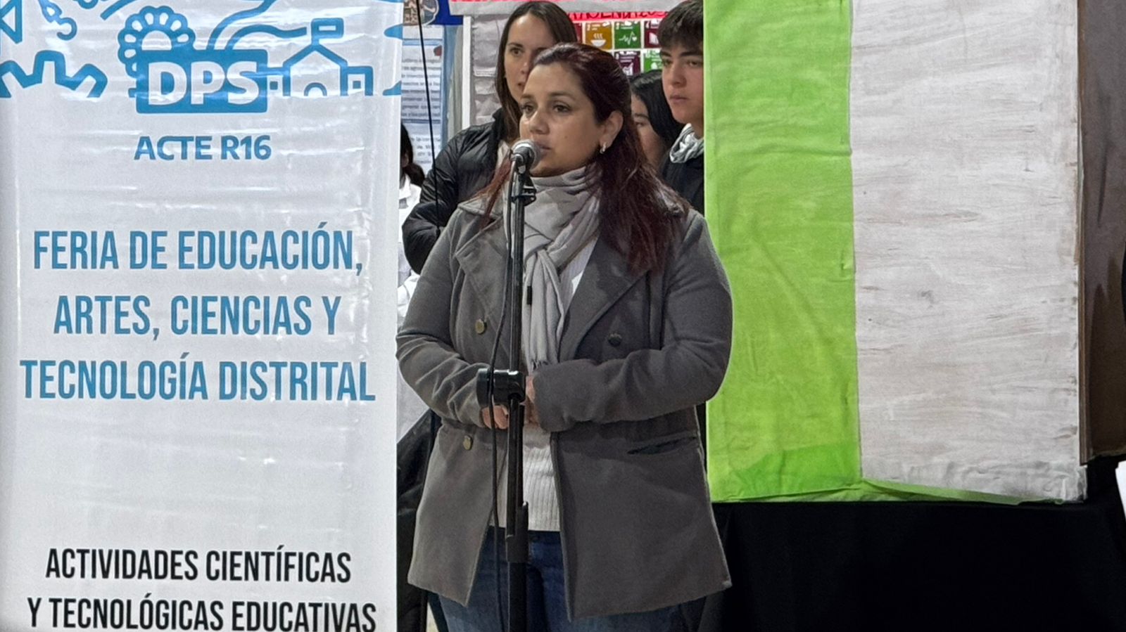 La segunda en tomar la palabra fue Carolina Díaz, coordinadora regional de la Feria de Educación, Ciencia, Arte y Tecnología, quien valoró la calidad y cantidad de proyectos presentados: “Estoy asombrada de la cantidad de trabajos que hay. Hoy inauguramos una etapa de consenso dentro de la evaluación, que es una etapa que nos cambia el paradigma evaluativo.”