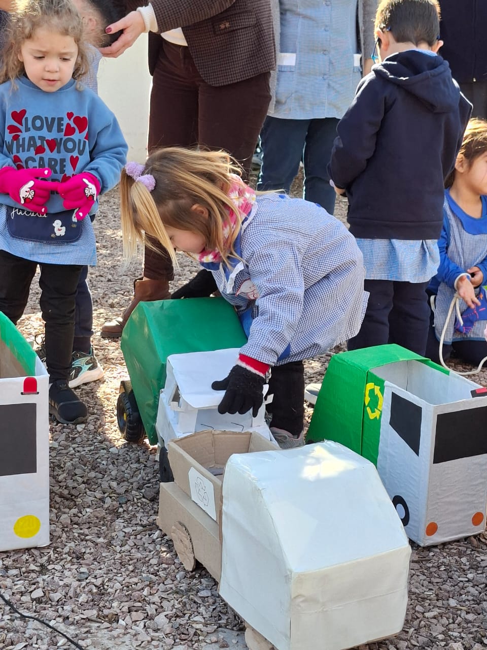 Durante la jornada, los chicos realizaron un simulacro de recolección con pequeños camiones que confeccionaron en el jardín. Esta actividad lúdica permitió afianzar los conocimientos adquiridos y valorar el rol de quienes trabajan por la limpieza de la ciudad.