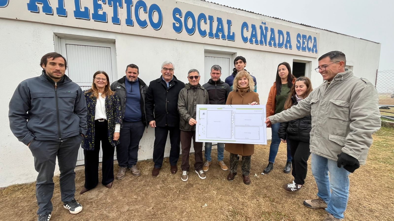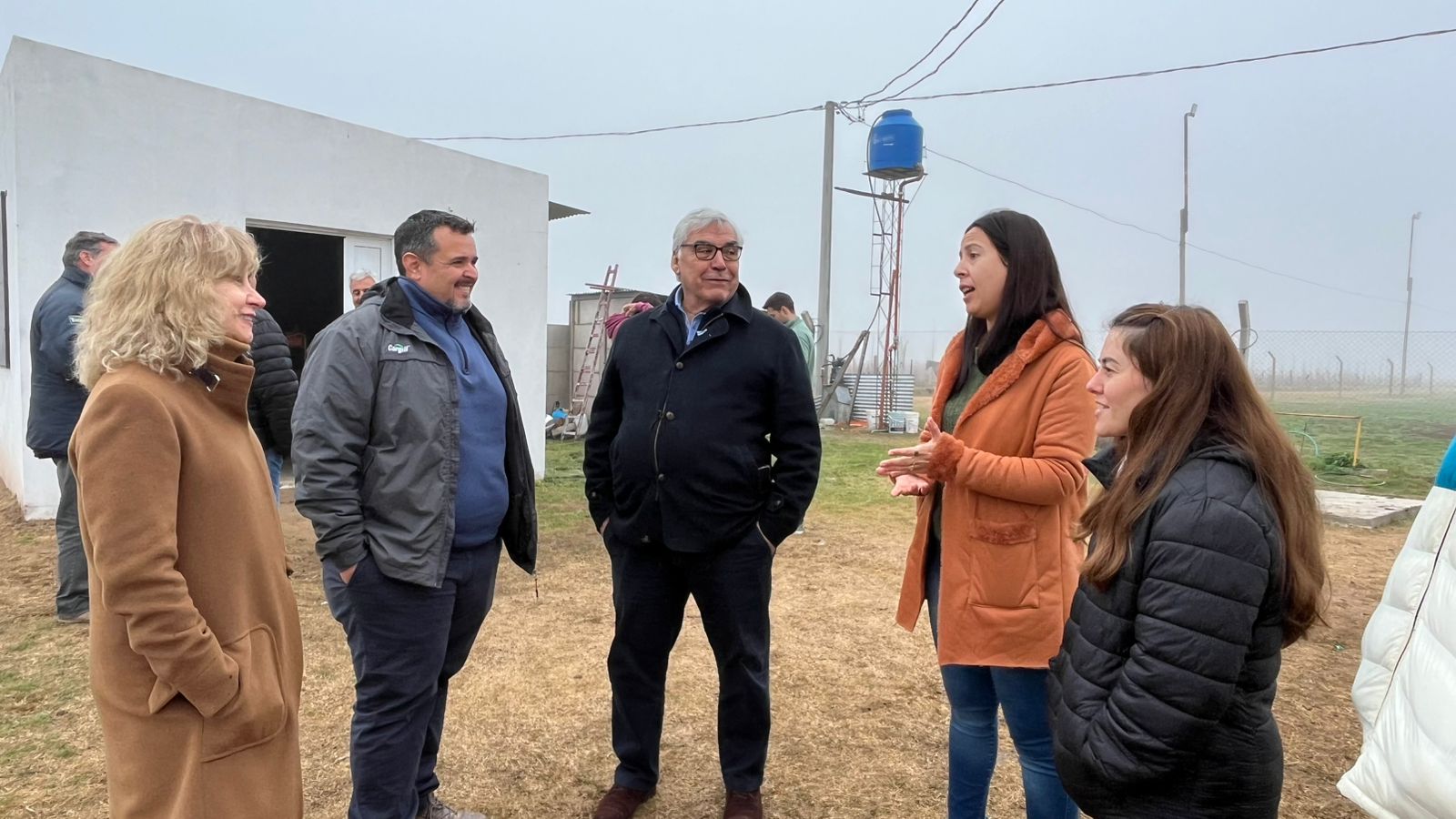 Durante la jornada, el intendente estuvo acompañado por la secretaria de Obras Públicas, Alejandra Matellán; la secretaria de Promoción, Producción y Medio Ambiente, Mónica Spertino; el secretario de Seguridad, Luis Plana; el delegado municipal Claudio León; y el presidente del club local, Claudio Luisetti.
