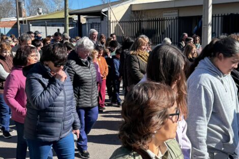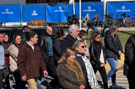 El intendente municipal Gilberto Alegre, acompañado por su esposa, se sumó a la recorrida junto a funcionarios municipales, concejales, vecinos y comunidad educativa del Instituto María Inmaculada.