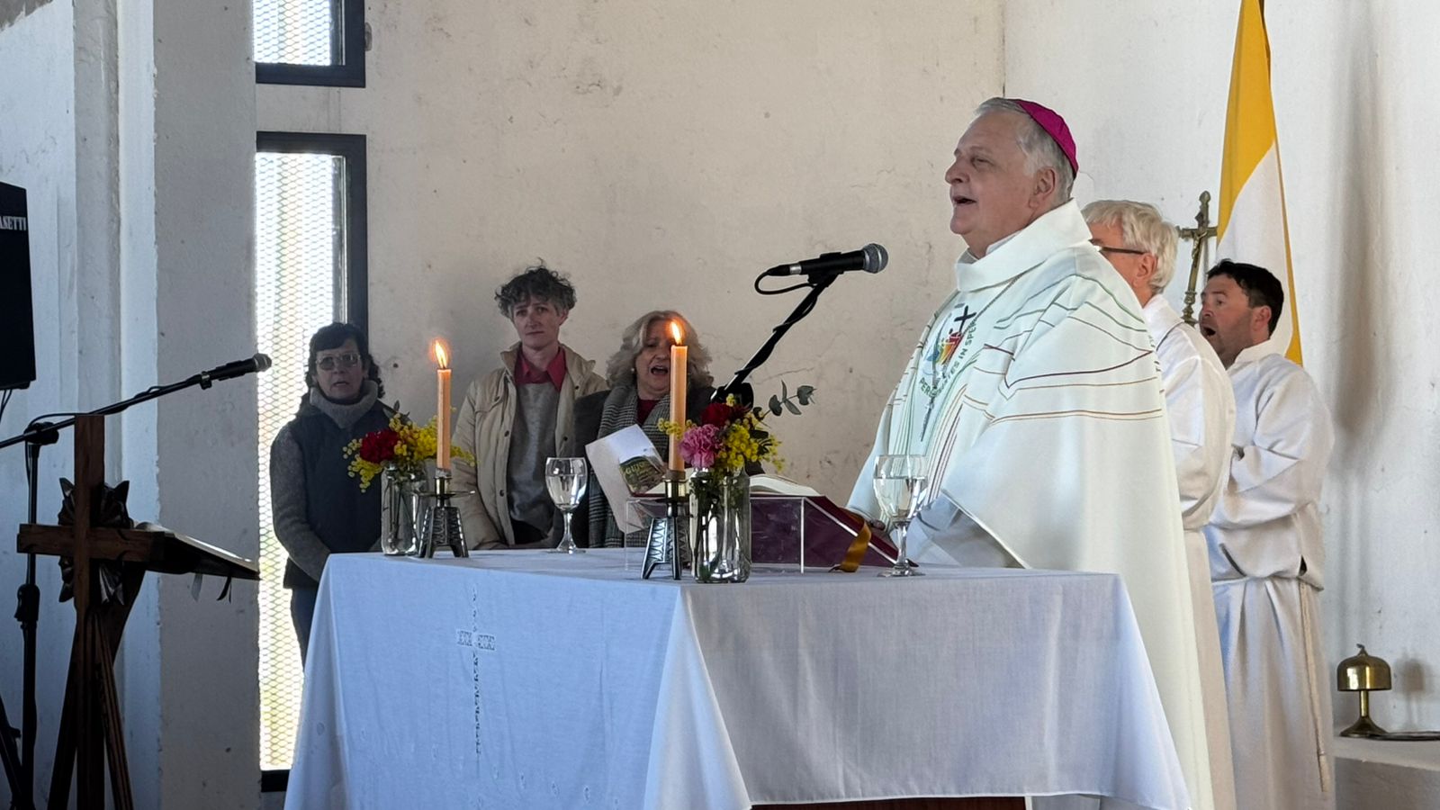 La procesión culminó en la Capilla San Cayetano, donde se celebró la Santa Misa oficiada por Monseñor Ariel Torrado Mosconi, Obispo de la Diócesis de Nueve de Julio, y concelebrada por el párroco local, Pbro. Tomasz Wargocki.