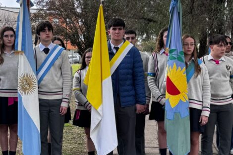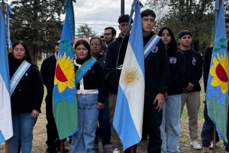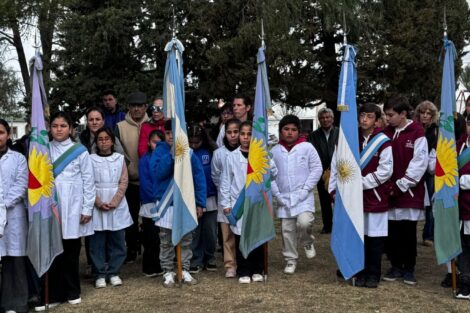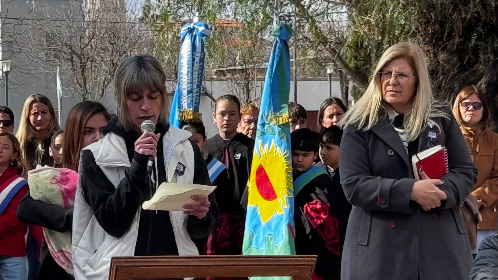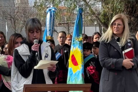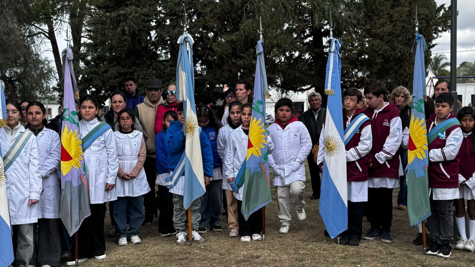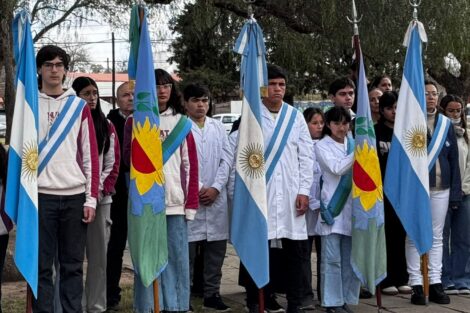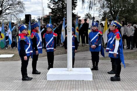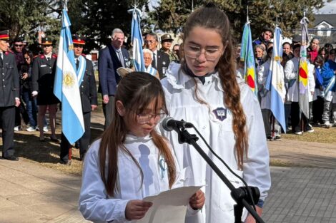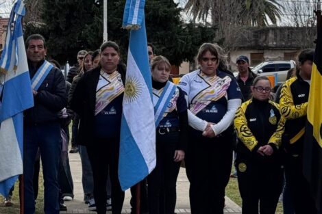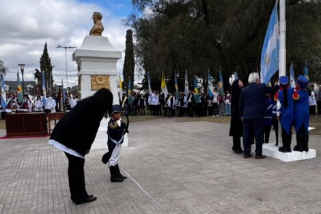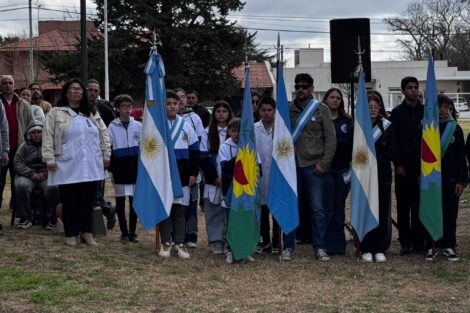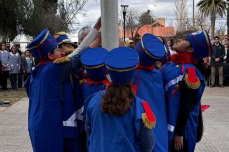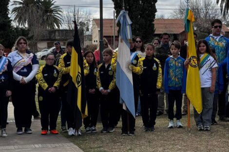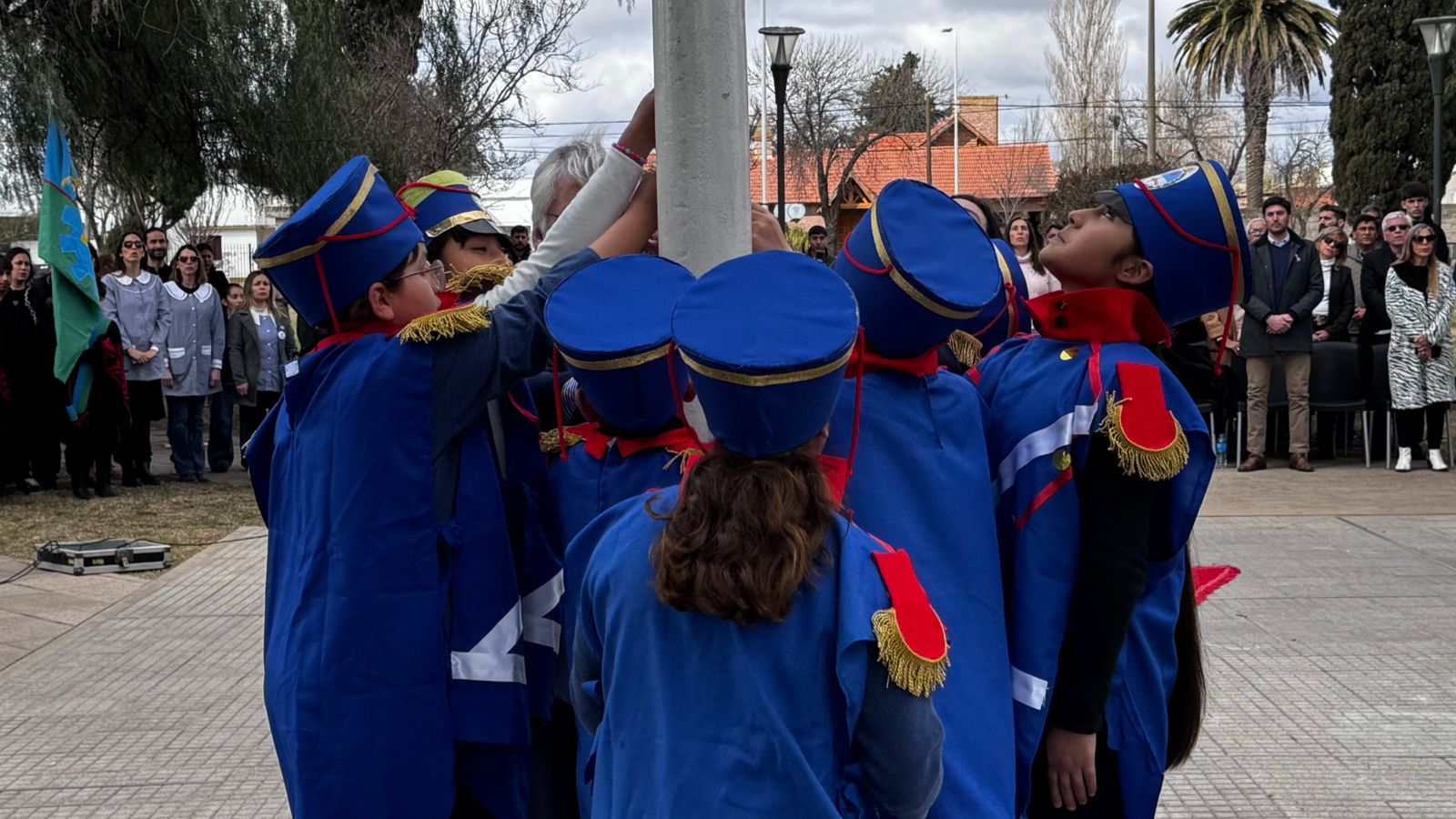 Seguidamente, el Intendente Municipal y la secretaria de Educación y Cultura, Valeria Iglesias, junto a los granaderos alumnos de la Escuela Primaria N°17, izaron el pabellón nacional con toque a silencio y se entonaron las estrofas del Himno Nacional Argentino.