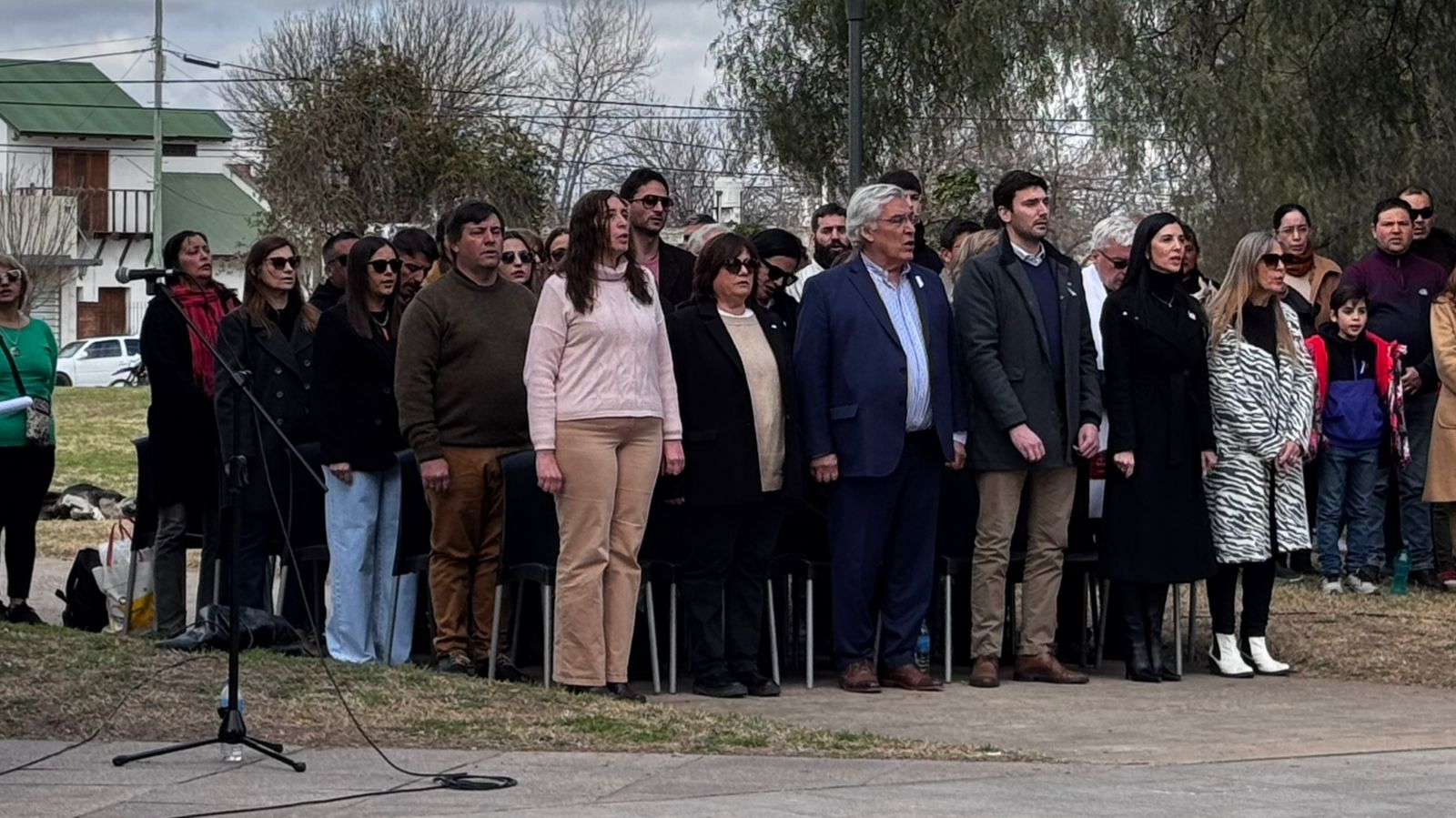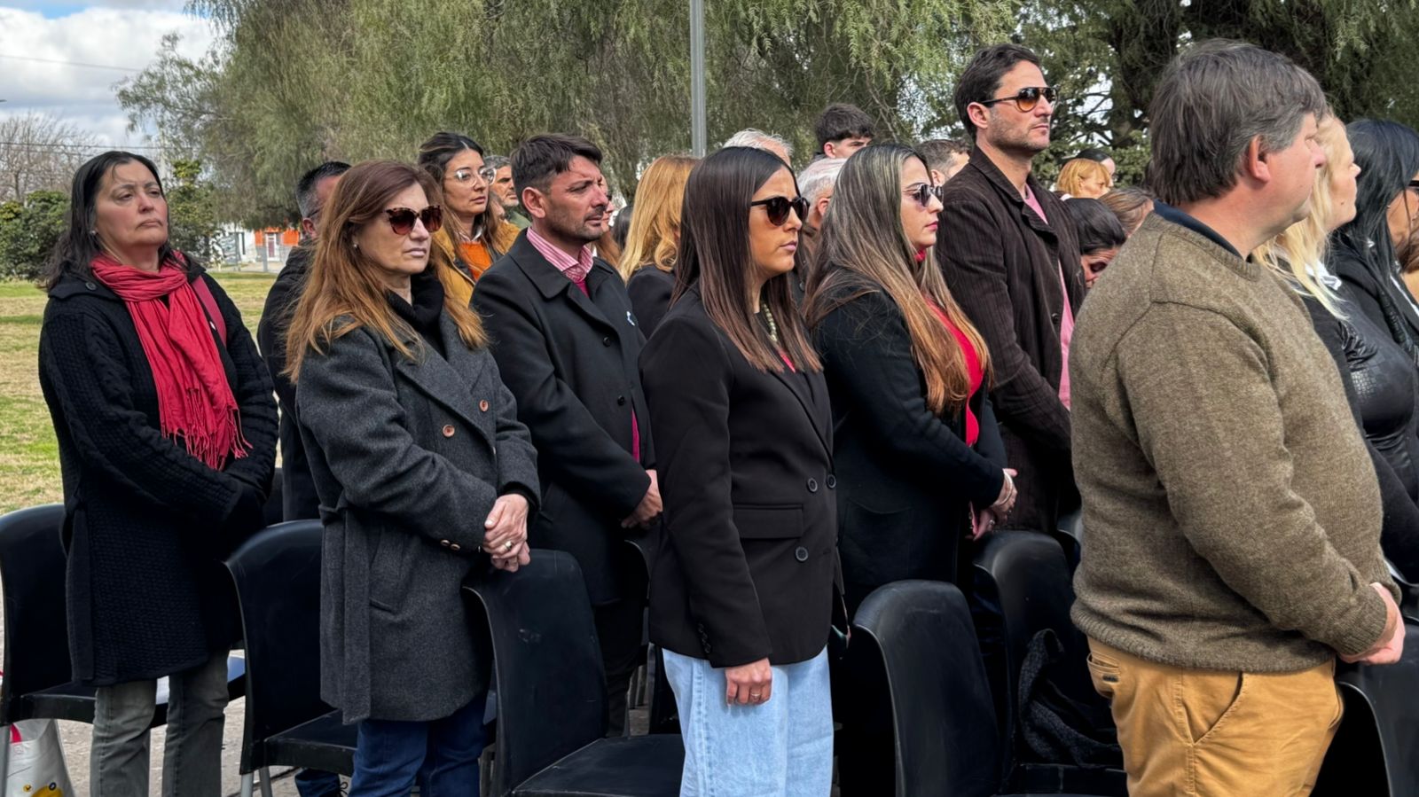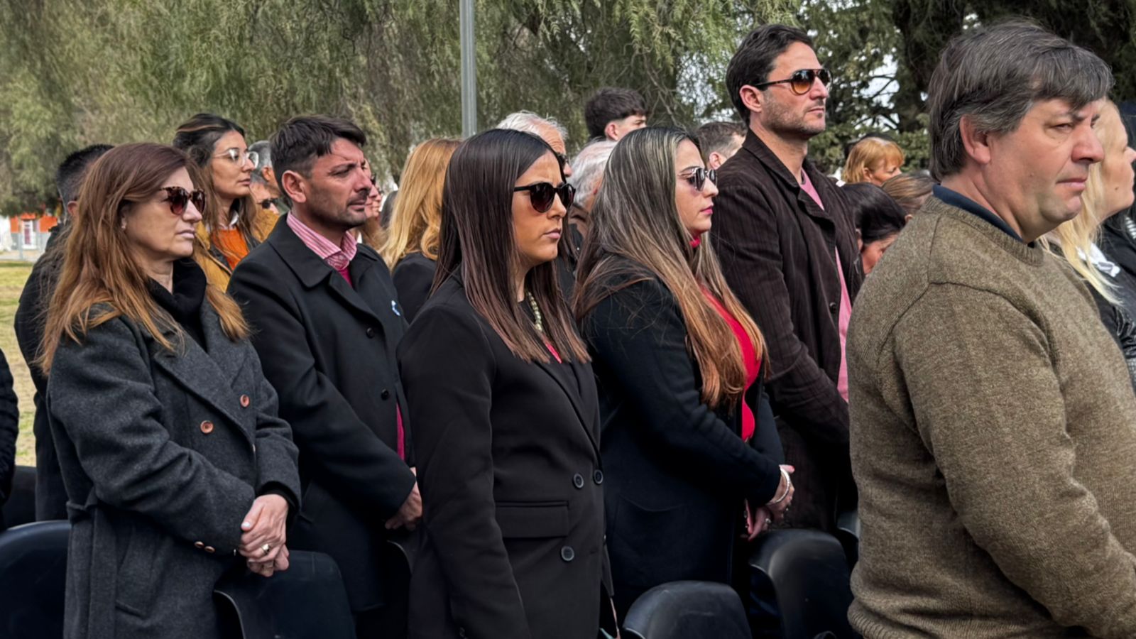 Acompañaron en la ceremonia, la presidente del Concejo Deliberante, Claudia Esain; concejales, secretarios, directores y coordinadores de las distintas áreas del Ejecutivo Municipal, autoridades educativas, banderas de instituciones educativas e intermedias y vecinos.