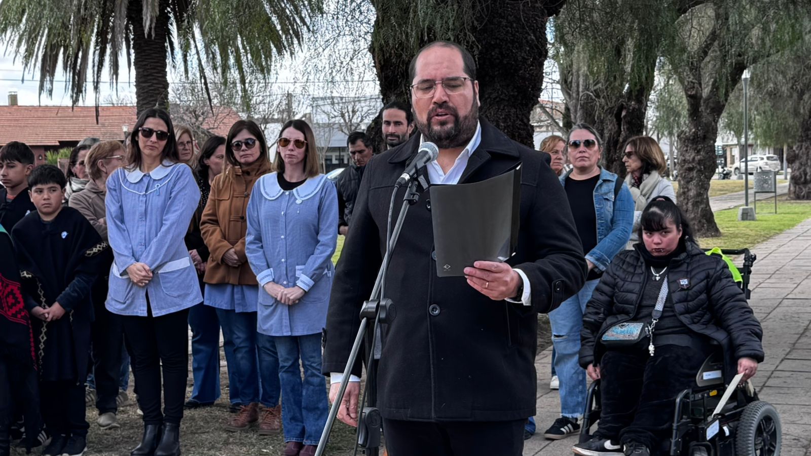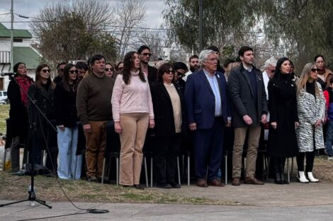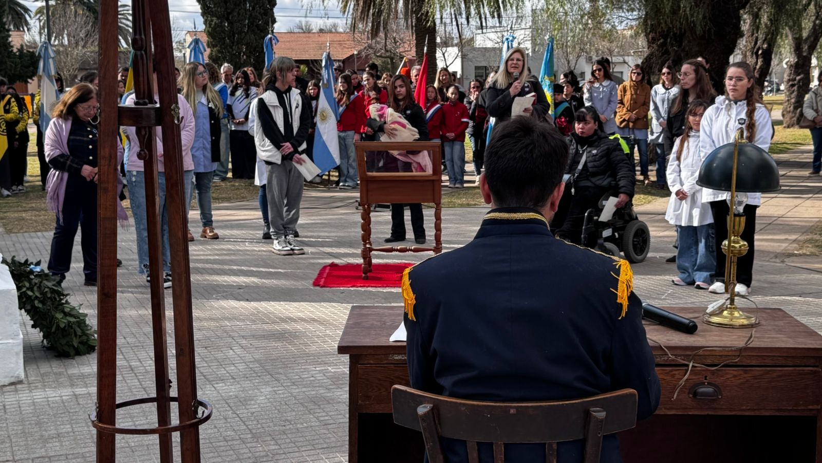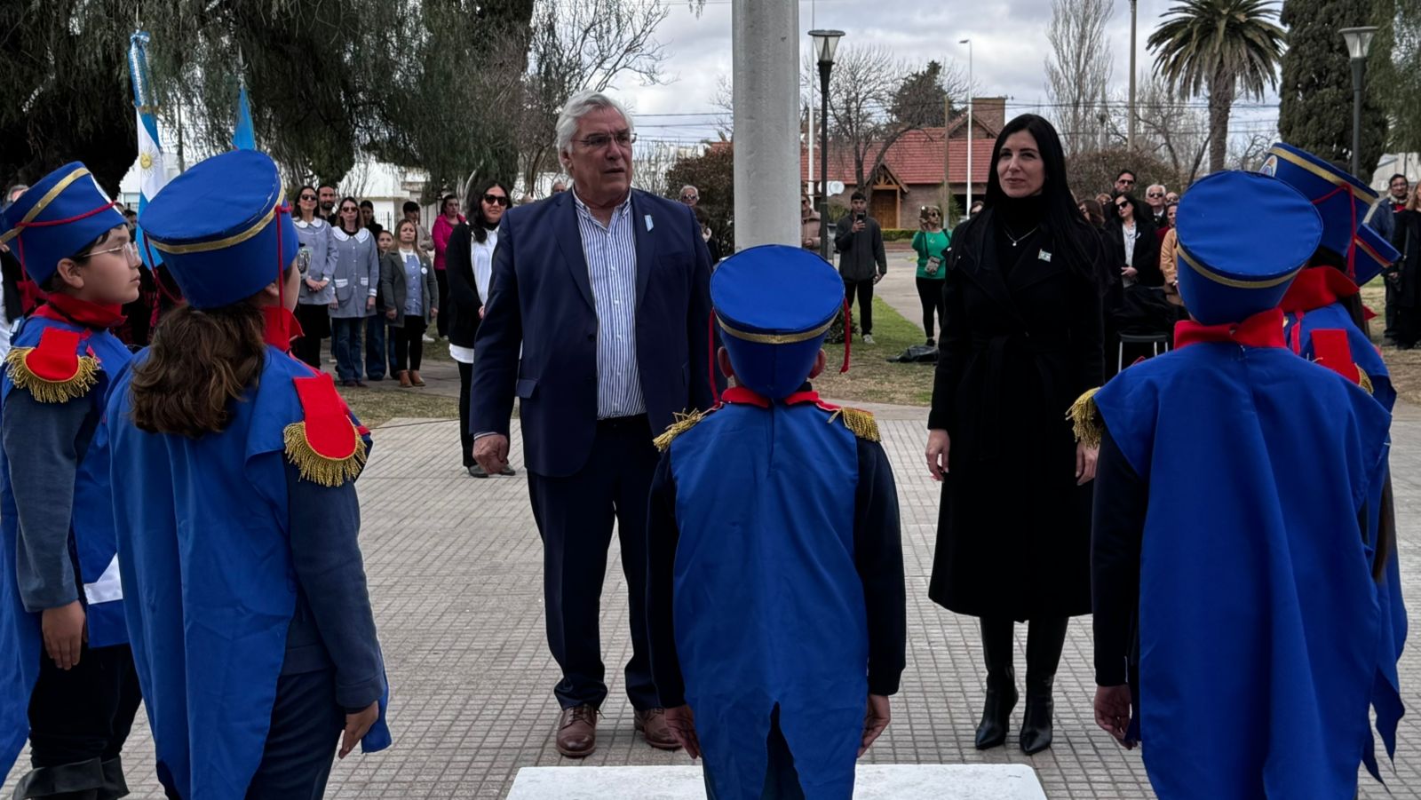 Acompañaron en la ceremonia, la presidente del Concejo Deliberante, Claudia Esain; concejales, secretarios, directores y coordinadores de las distintas áreas del Ejecutivo Municipal, autoridades educativas, banderas de instituciones educativas e intermedias y vecinos.
