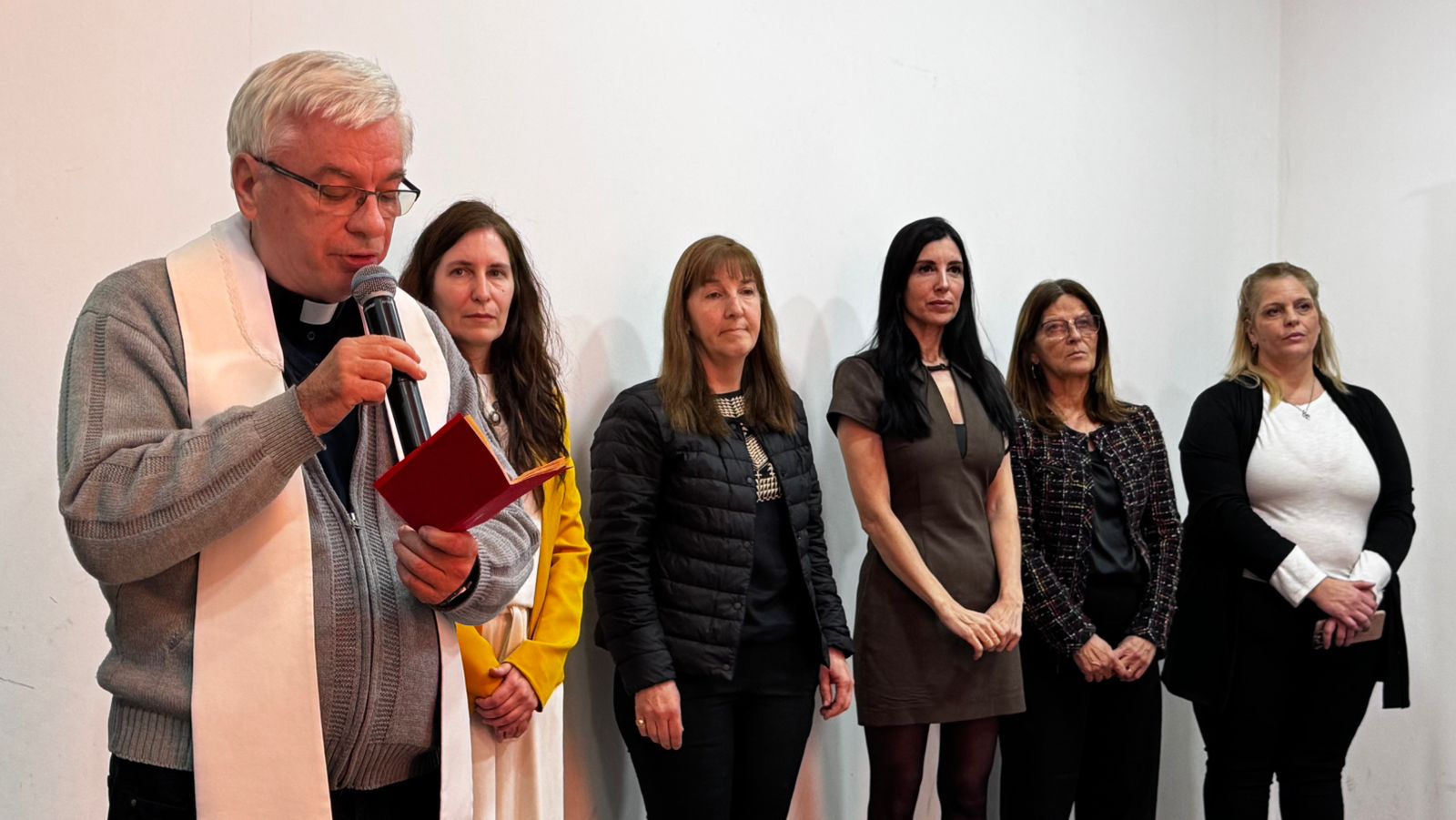 En el inicio, se procedió al descubrimiento de dos placas conmemorativas. La primera, enviada por el Departamento Ejecutivo, fue descubierta por el secretario de Gobierno, Mariano Maranta; la secretaria de Educación y Cultura, Valeria Iglesias; la secretaria de Servicios Públicos, Alejandra Matellán; y la concejal Betina Rasse. Posteriormente, la Jefa de Biblioteca, Nieves Castillo, junto a la presidente de la Comisión de Apoyo, Silvia Varea, descubrieron la placa institucional. Ambas fueron bendecidas por el Pbro. Tomasz Wargocki.