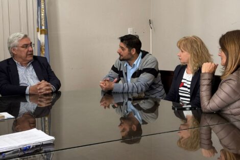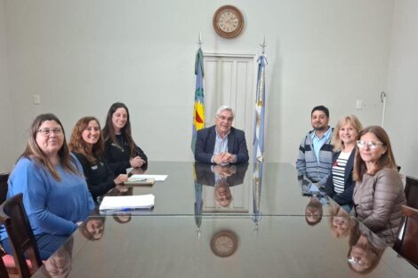 El intendente Gilberto Alegre, junto a la secretaria de Promoción, Producción y Medio Ambiente, Mónica Spertino, y la secretaria de Obras Públicas, Alejandra Matellán, se reunió este lunes en la municipalidad con técnicos del Ministerio de Ambiente de la Provincia de Buenos Aires, para avanzar en la habilitación definitiva del Sector Industrial Planificado ubicado sobre Ruta 188.