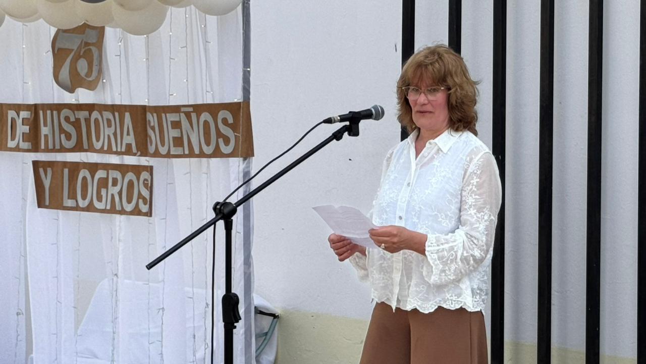 La ex docente Gabriela Lanzoni también dejó un mensaje de gratitud y compromiso con la comunidad educativa al señalar que “a lo largo de estos 75 años, generaciones de docentes y familias confiaron en esta escuela, que sigue siendo un espacio de valores, de encuentro y de esperanza. Gracias a quienes siguen luchando para que la escuela rural continúe abierta y viva”.