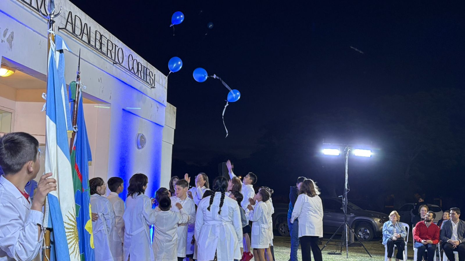 En nombre de la escuela se agradeció a la Cooperativa Vial, que hizo entrega de material deportivo. Luego se cantó el “feliz cumpleaños” y se realizó una suelta de globos.