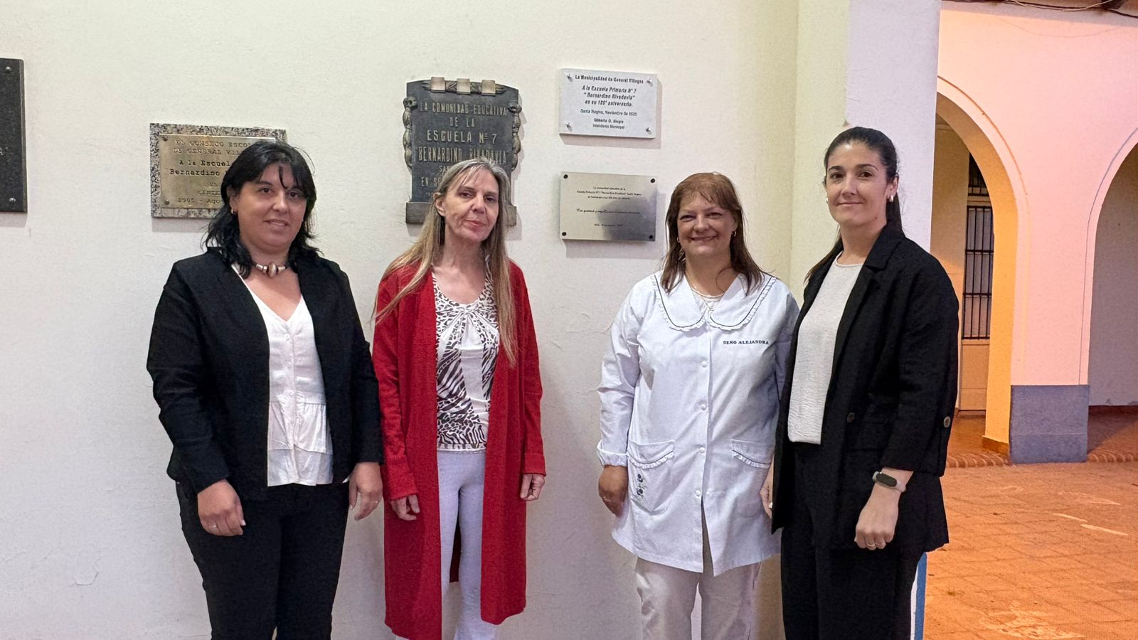 Durante el acto protocolar, se descubrieron placas recordatorias del Departamento Ejecutivo Municipal y por la Comisión Cooperadora de la escuela, con motivo de ambas conmemoraciones.