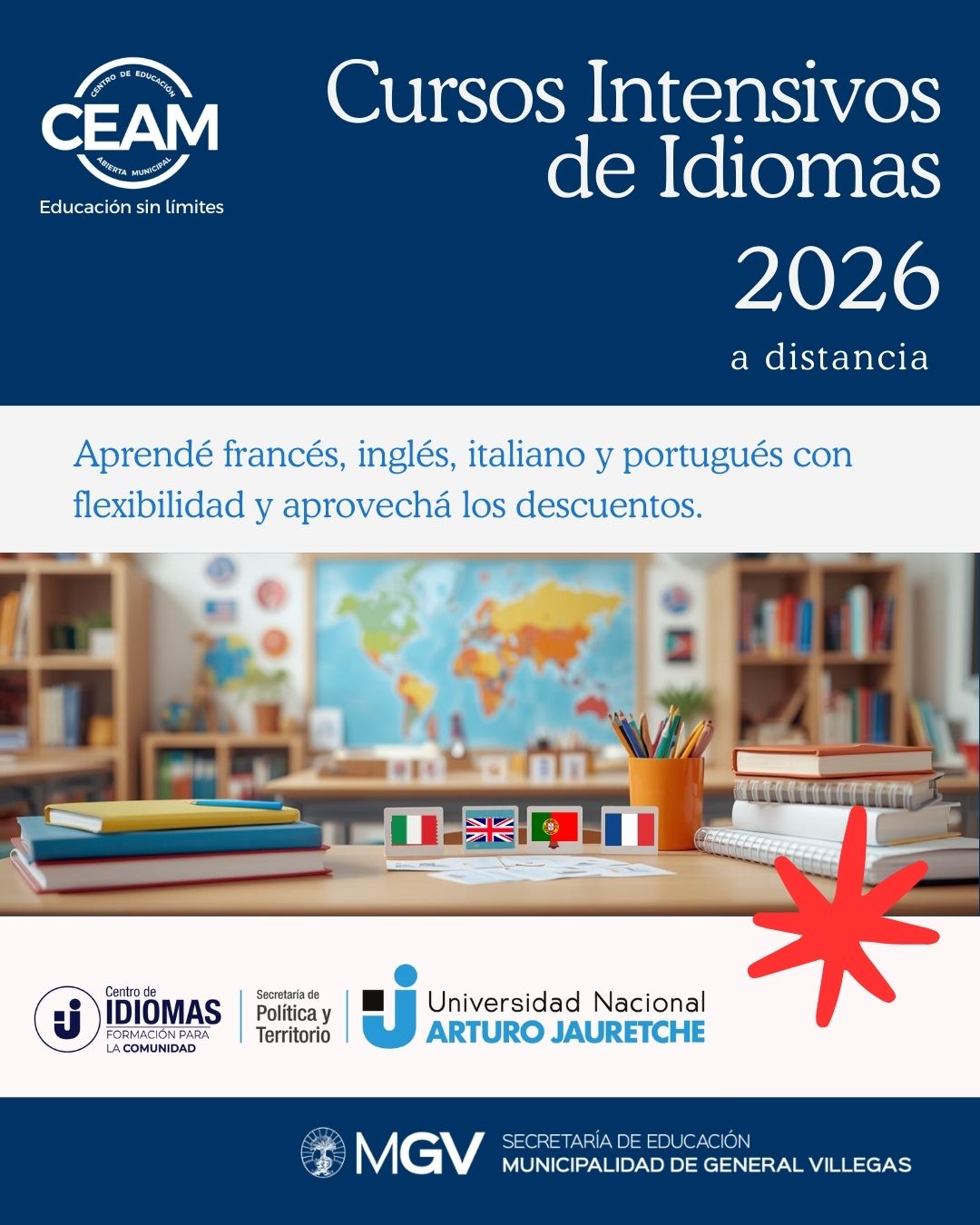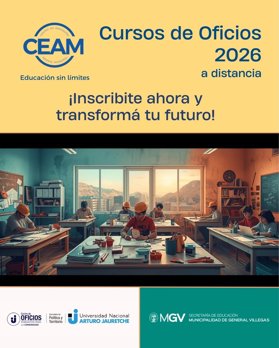 En el marco del acta de compromiso vigente entre la Municipalidad de General Villegas, a través del CEAM, y la Universidad Nacional Arturo Jauretche (UNAJ), se encuentran disponibles propuestas de formación para la comunidad con inscripción abierta para el año 2026.
