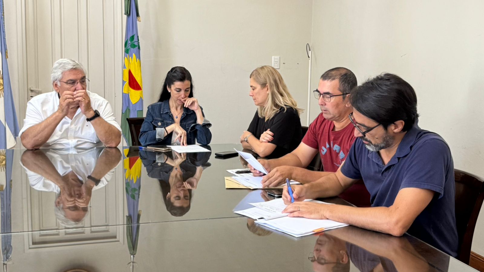 El acto fue encabezado por el intendente municipal Gilberto Alegre y contó con la presencia de la secretaria de Gobierno, Valeria Iglesias; la secretaria de Hacienda y Finanzas, Gisela Bollini; personal de la Secretaría de Obras Públicas, de la Oficina de Compras y los oferentes que participaron del proceso licitatorio.