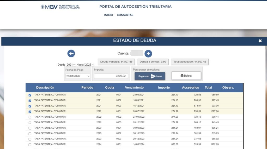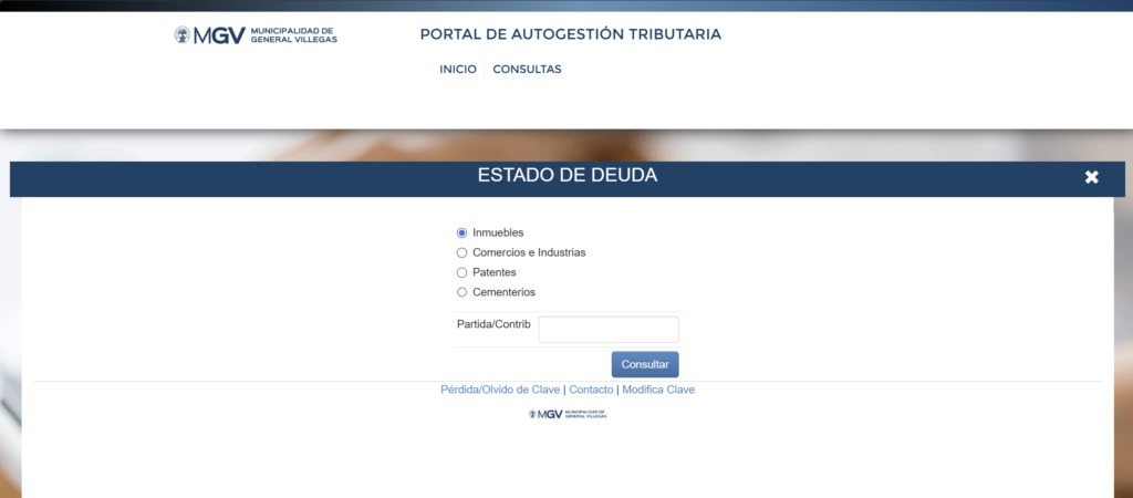 Se abrió la sección de consulta de deuda. Selecciona sobre que tributo queres consultar tu deuda y hace click en el botón de consultar.
