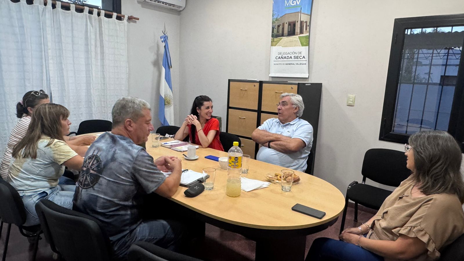 El intendente Gilberto Alegre visitó el jueves 5 de febrero la localidad de Cañada Seca, acompañado por la secretaria de Gobierno, Valeria Iglesias; la secretaria de Obras Públicas, Alejandra Matellán; y la directora de Gestión y Administración Hospitalaria, Fernanda Bonelli.