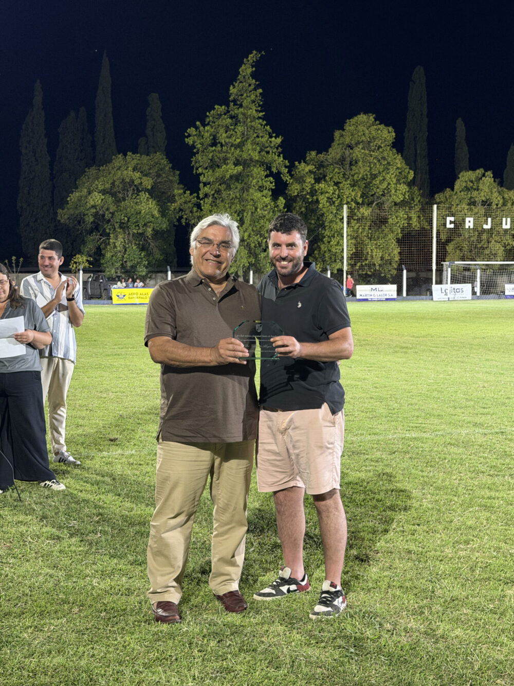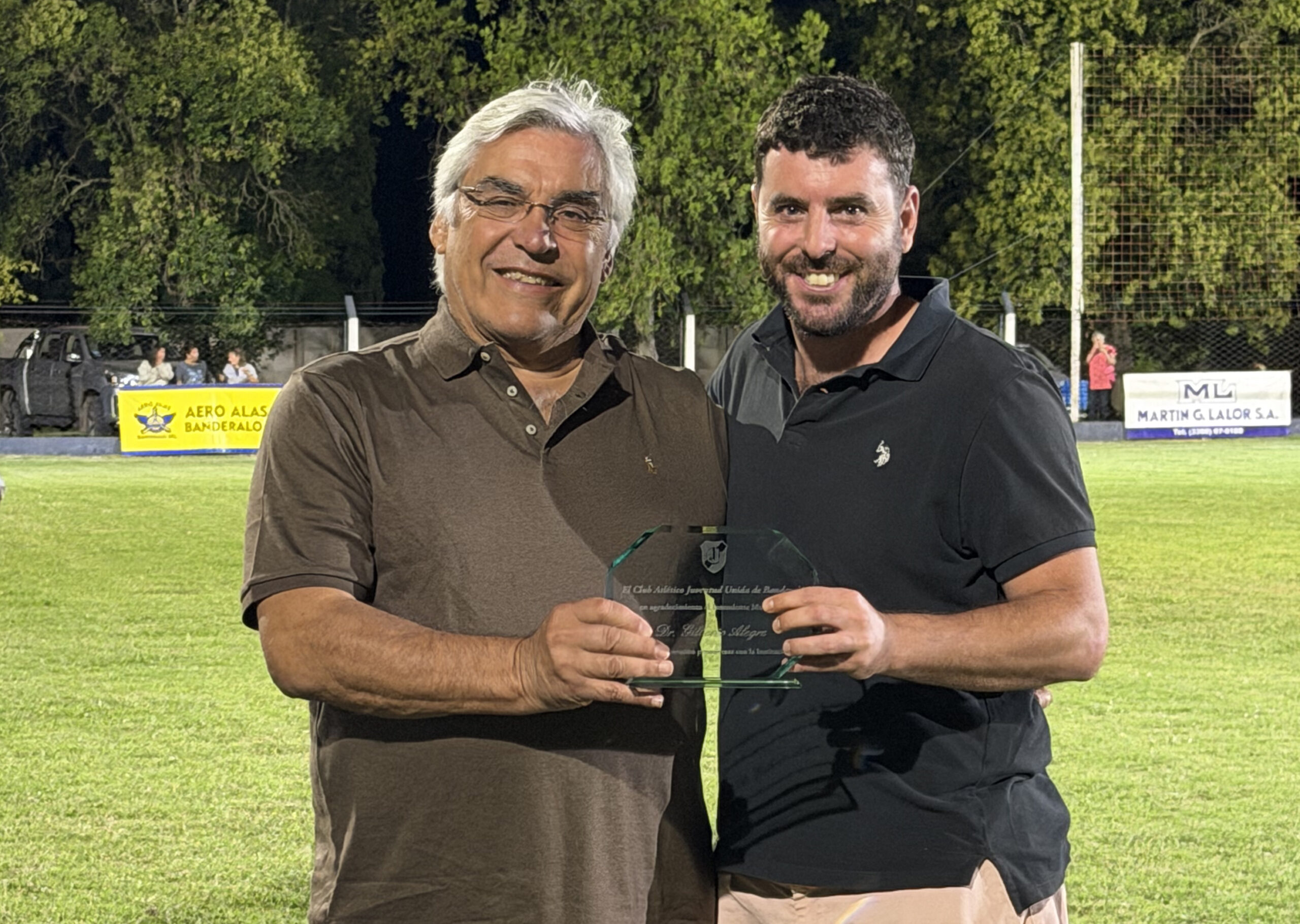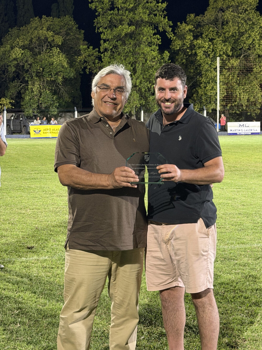 El presidente del club, Manuel Echenique, agradeció al intendente Gilberto Alegre por el acompañamiento y la ayuda económica otorgada a través de un subsidio municipal, que permitió materializar la instalación de las luminarias y completar el cerco perimetral del predio. En ese marco, la institución hizo entrega de una plaqueta al jefe comunal en señal de agradecimiento.