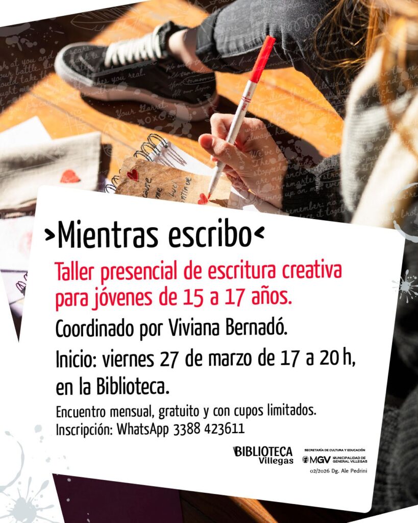 En marzo inicia el taller de escritura creativa para jóvenes de 15 a 17 años. Coordinado por Viviana Bernadó, el espacio propone lecturas y herramientas propias de la literatura actual.