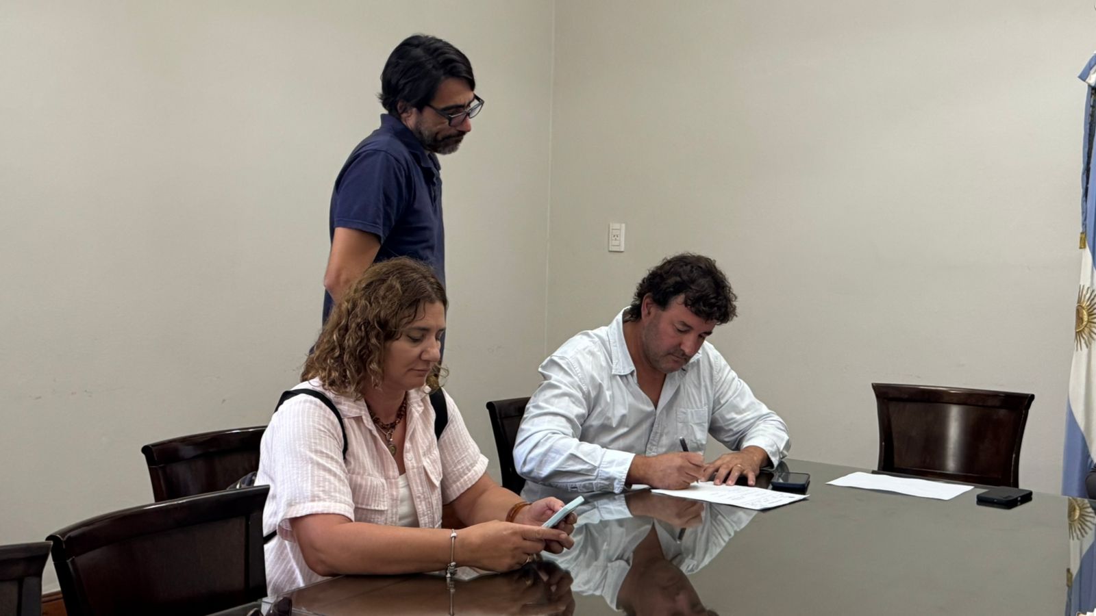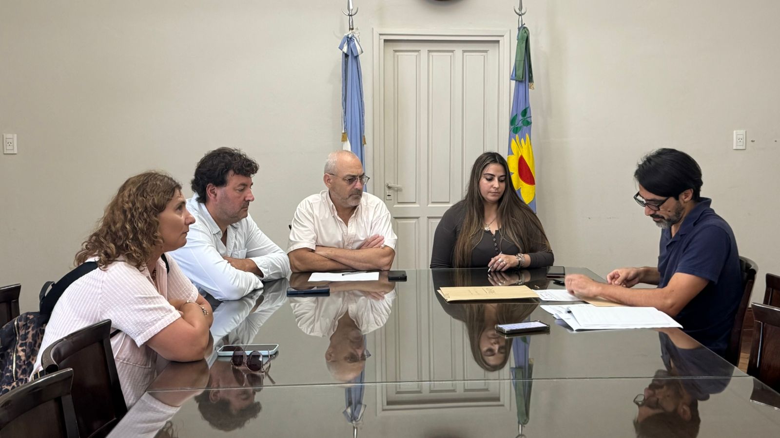 El acto administrativo tuvo lugar en el Salón de los Acuerdos del Palacio Municipal y fue encabezado por la subsecretaria de Gobierno, Maira García y el director de Obras Públicas, Marcelo Elgue, acompañados por personal de la Oficina de Compras y representantes de las empresas oferentes.
