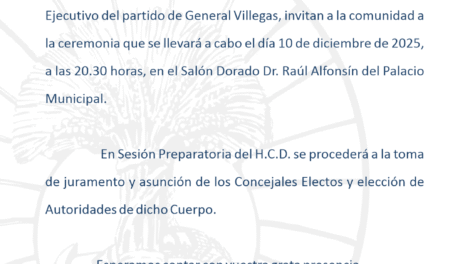 El próximo 10 de diciembre, a las 18 horas, el Consejo Escolar del partido de General Villegas llevará a cabo el acto de asunción de sus nuevas...