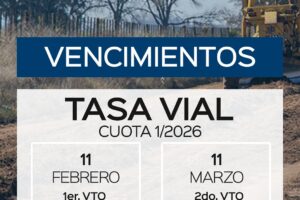 La Dirección de Rentas de la Municipalidad de General Villegas dio a conocer las fechas en las que opera el vencimiento de la Cuota 1 de la Tasa Vial. 1°...