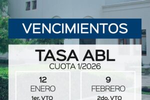 La Dirección de Rentas de la Municipalidad de General Villegas informa que en los meses de enero y febrero opera el vencimiento de la Cuota 1/2026 del ABL...